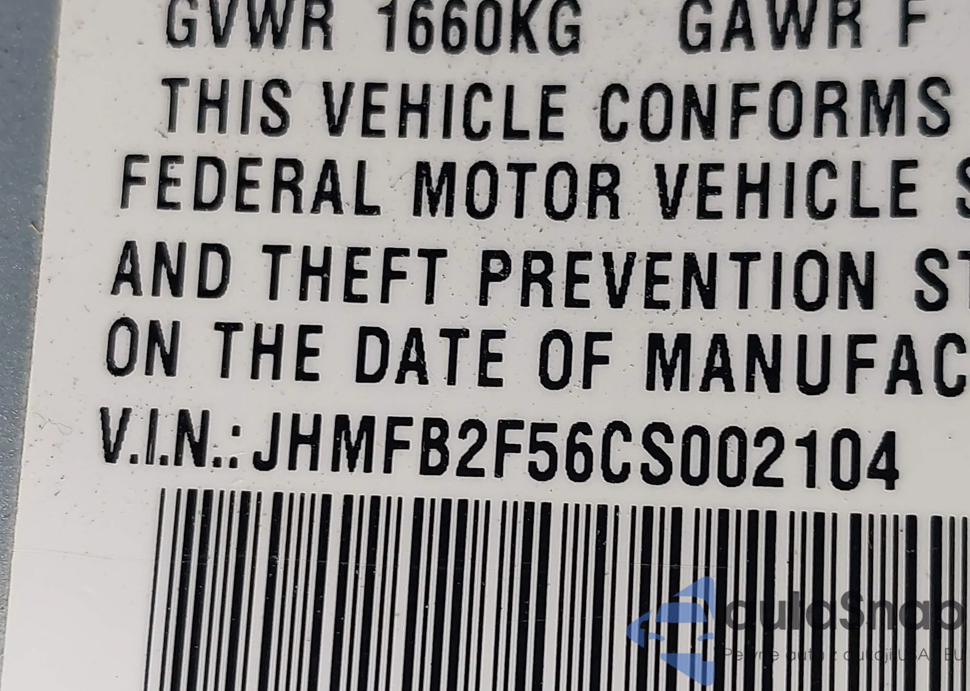 • VIN JHMFB2F56CS002104