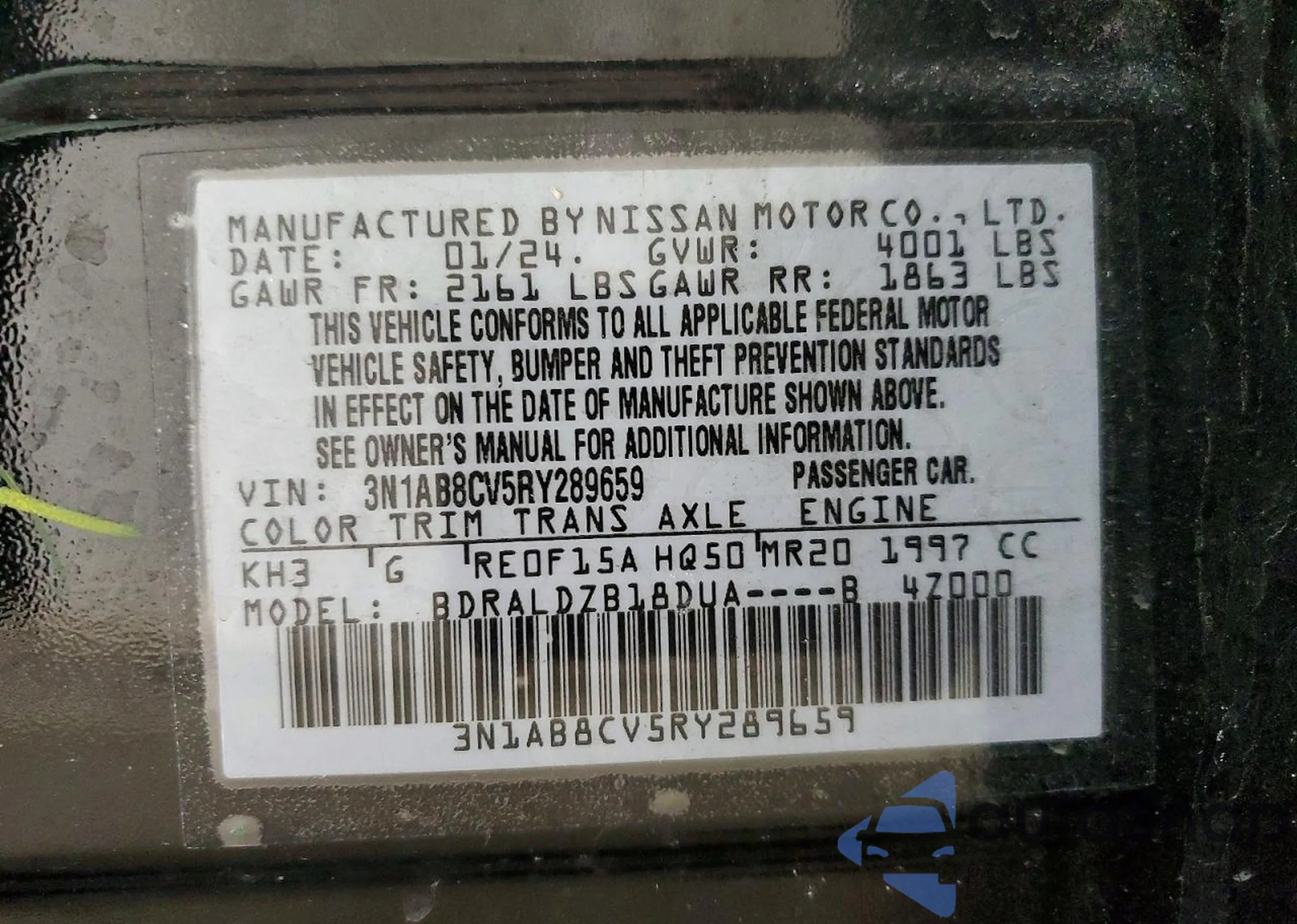 • VIN 3N1AB8CV5RY289659