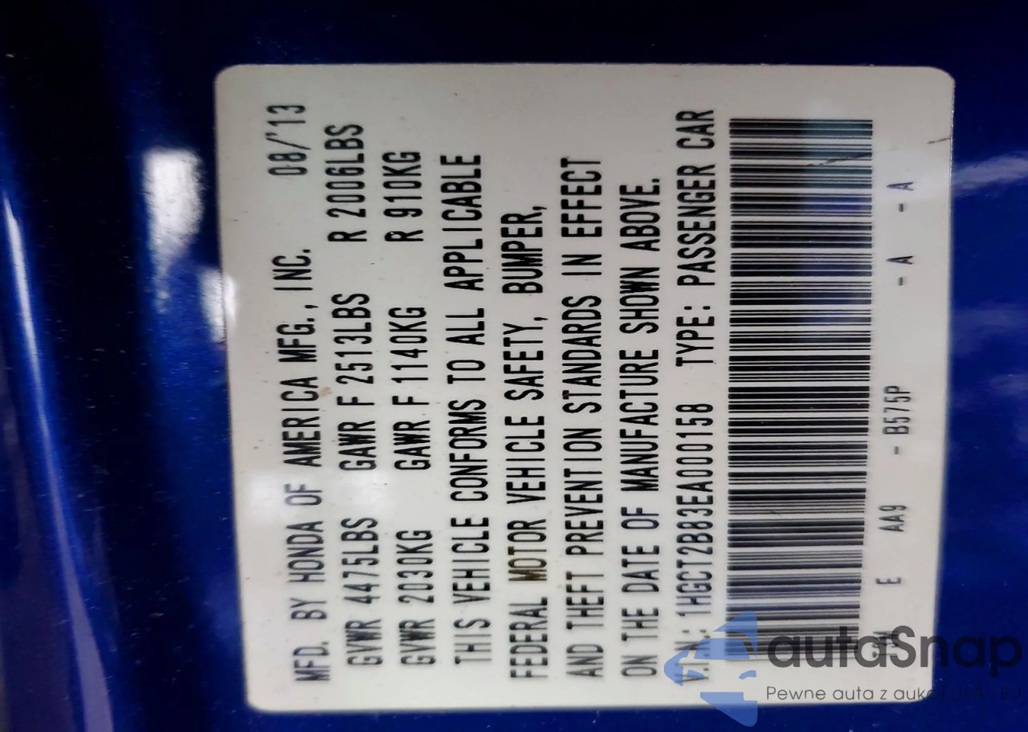 LOT: 98172335 VIN: 1HGCT2B83EA000158