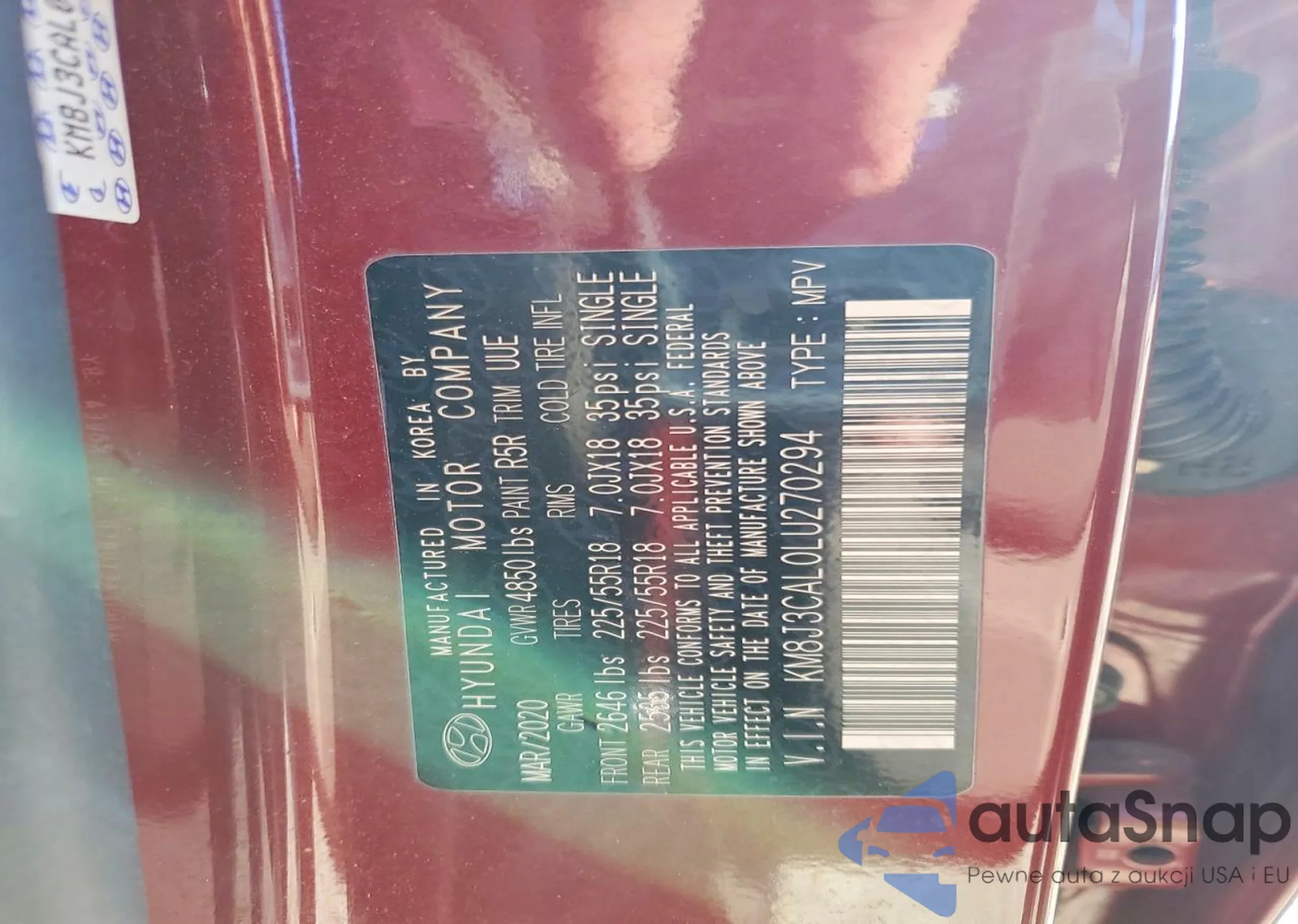 • VIN KM8J3CAL0LU270294