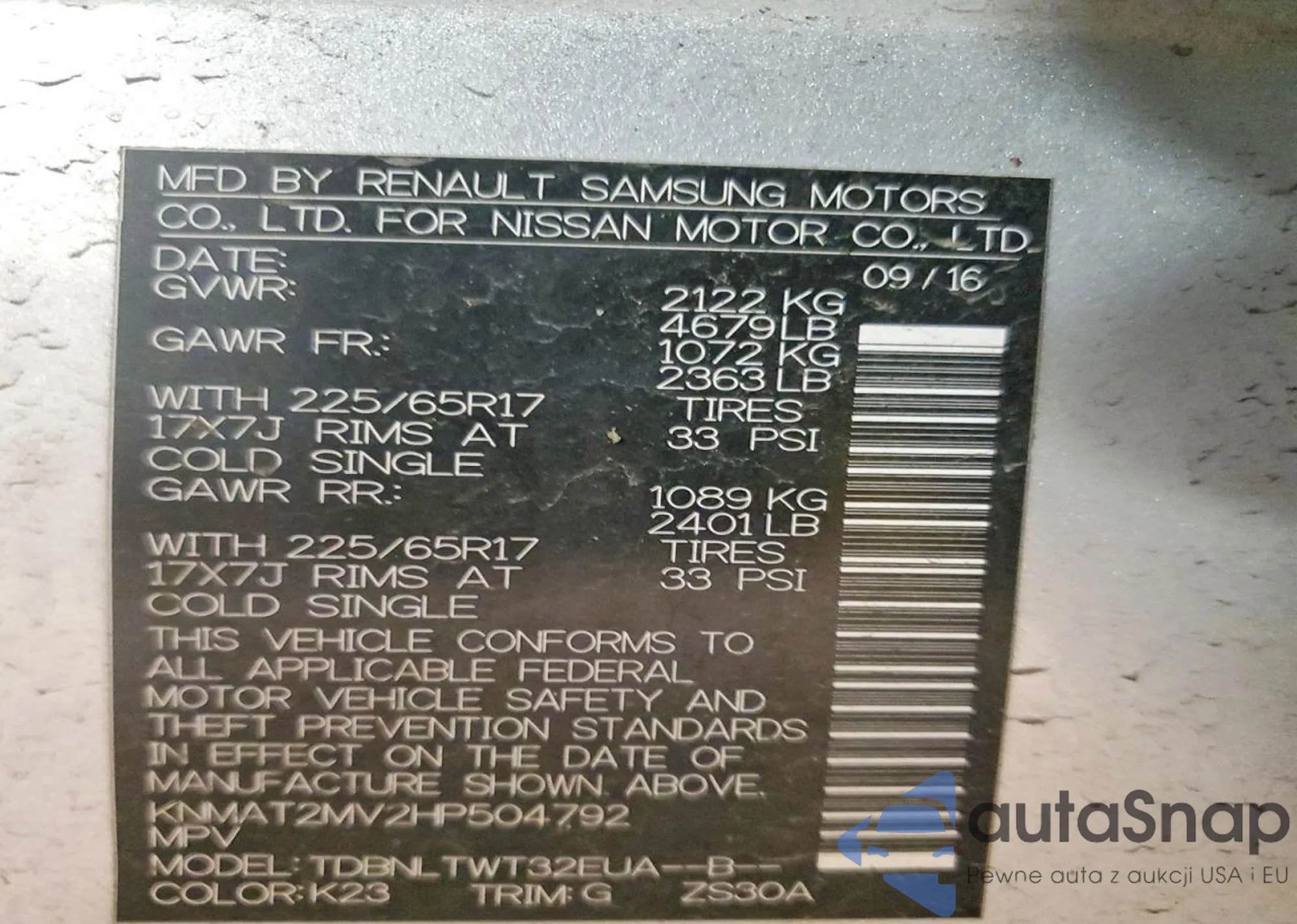 • VIN KNMAT2MV2HP504792