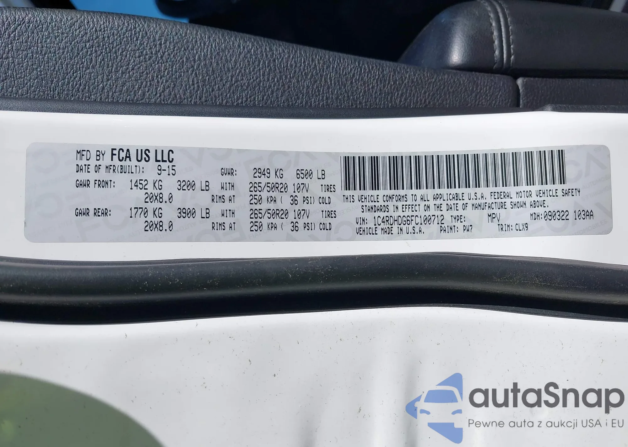 • VIN 1C4HJXDN3MW596142