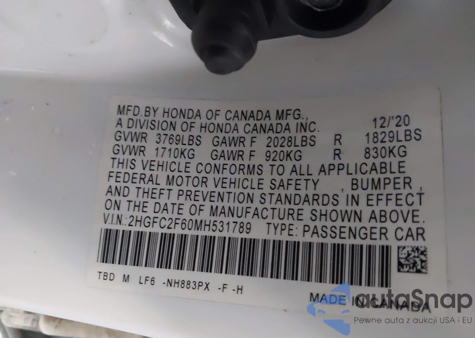 • VIN 2HGFC2F60MH531789