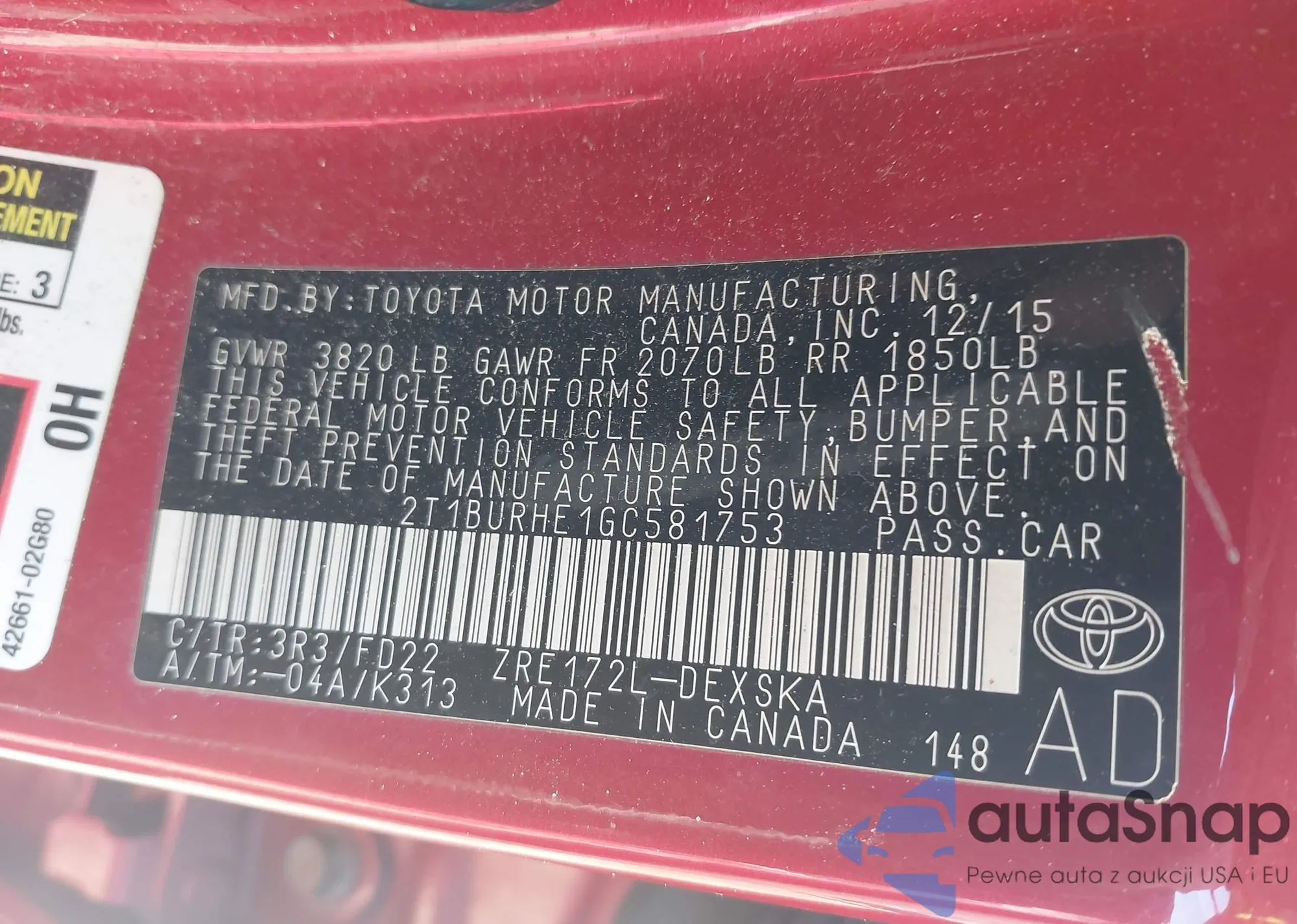 • VIN 2T1BURHE1GC581753