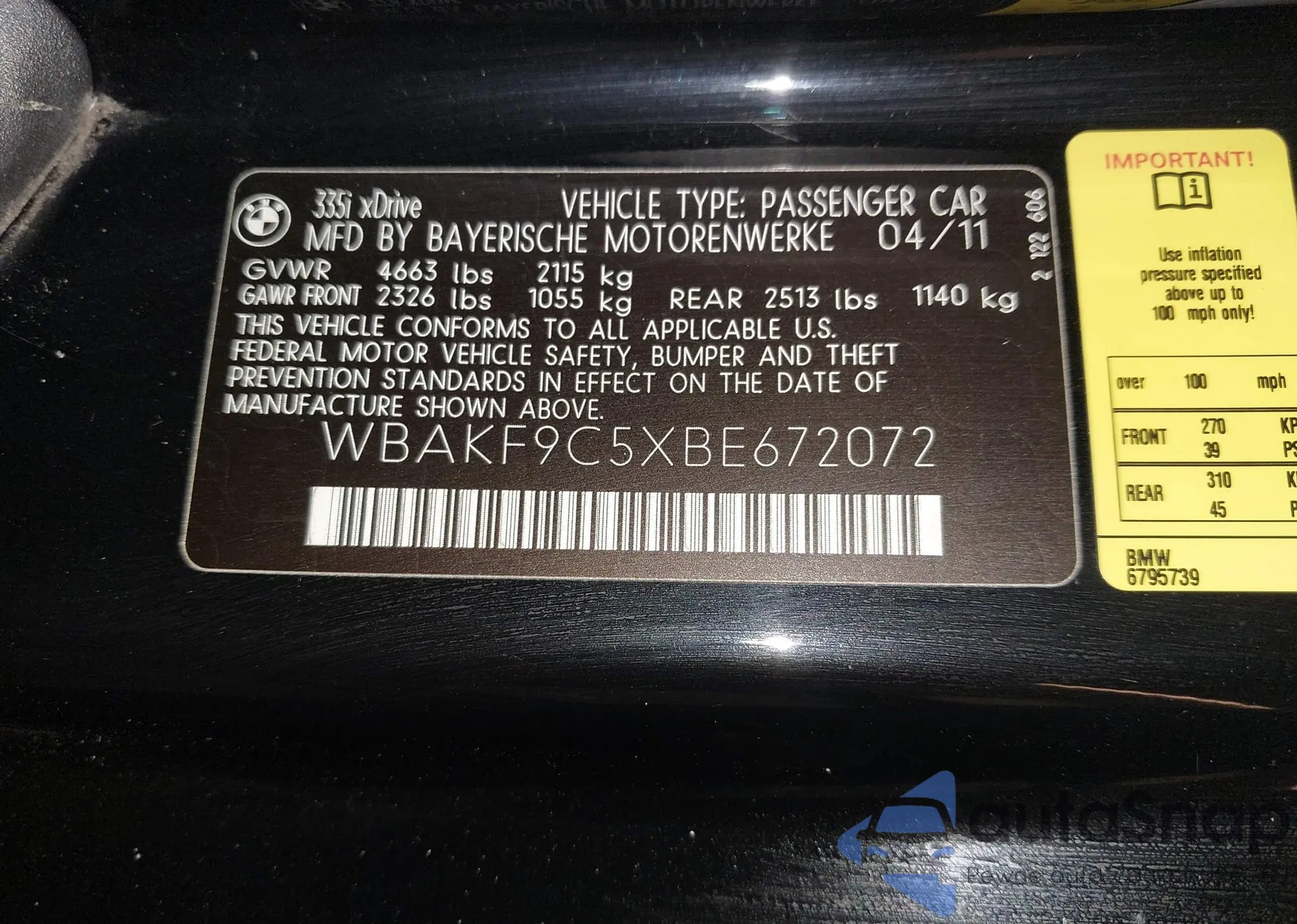 • VIN 5YMGY0C50D0C11830