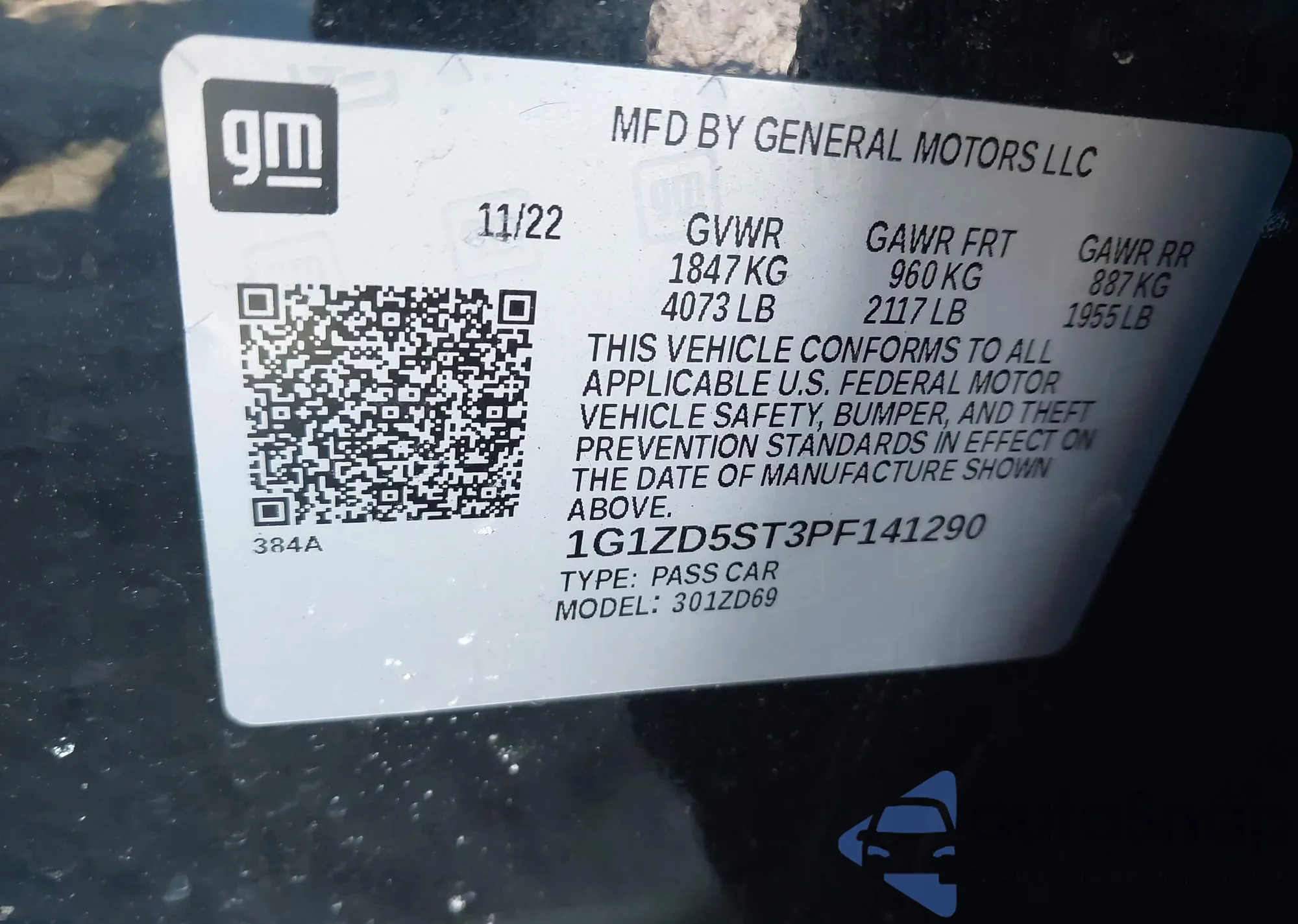 • VIN 1G1ZD5ST3PF141290