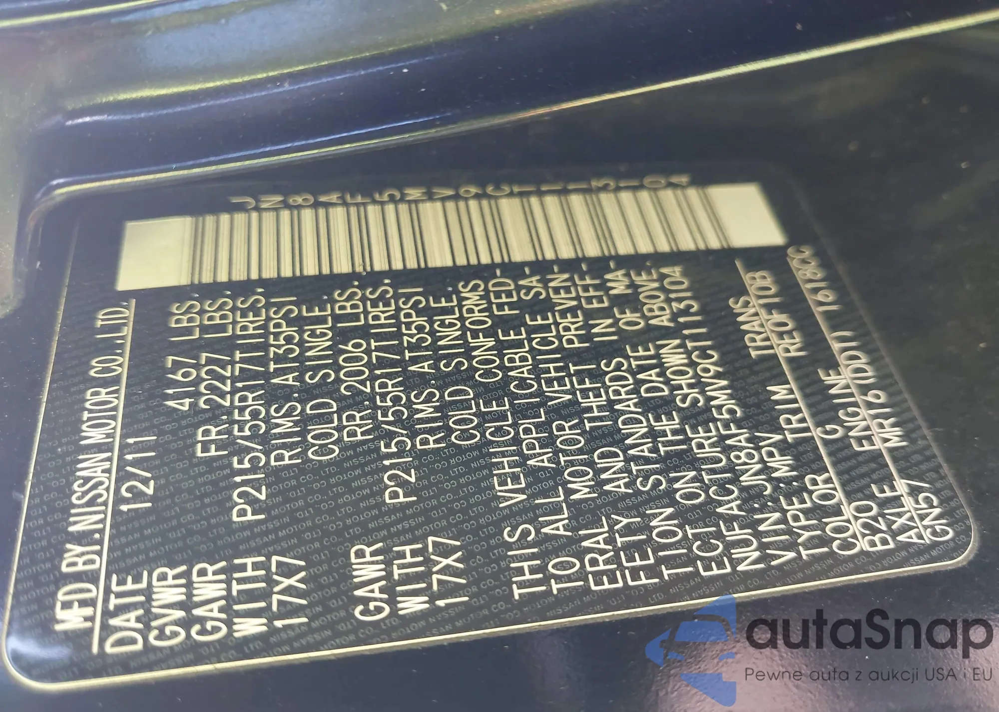 • VIN JN8AF5MV9CT113104