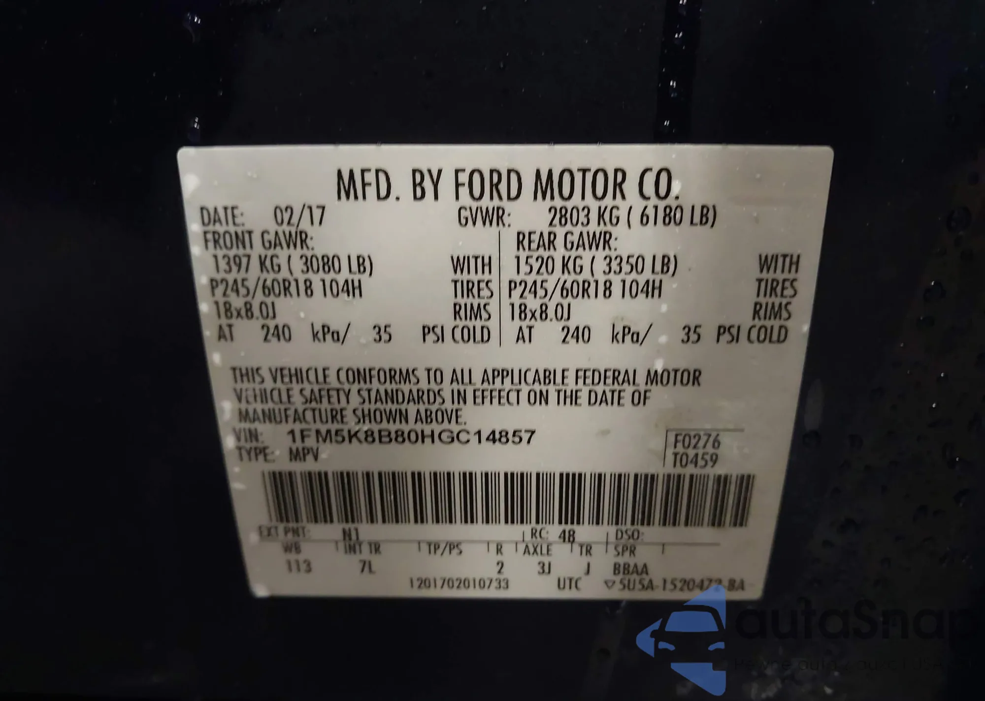 • VIN 1FM5K8B80HGC14850