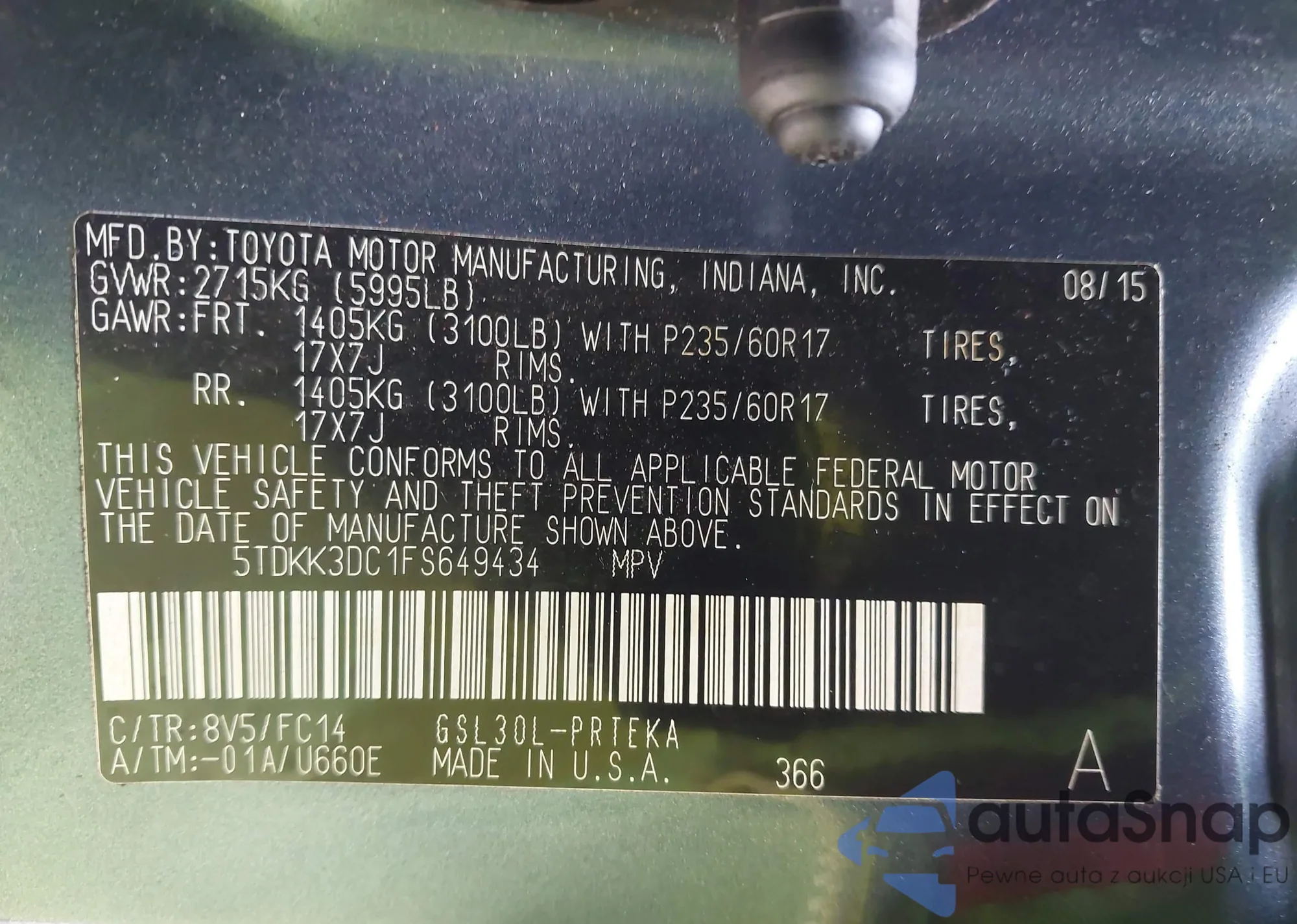 • VIN 5TDXZ3DCXHS898965