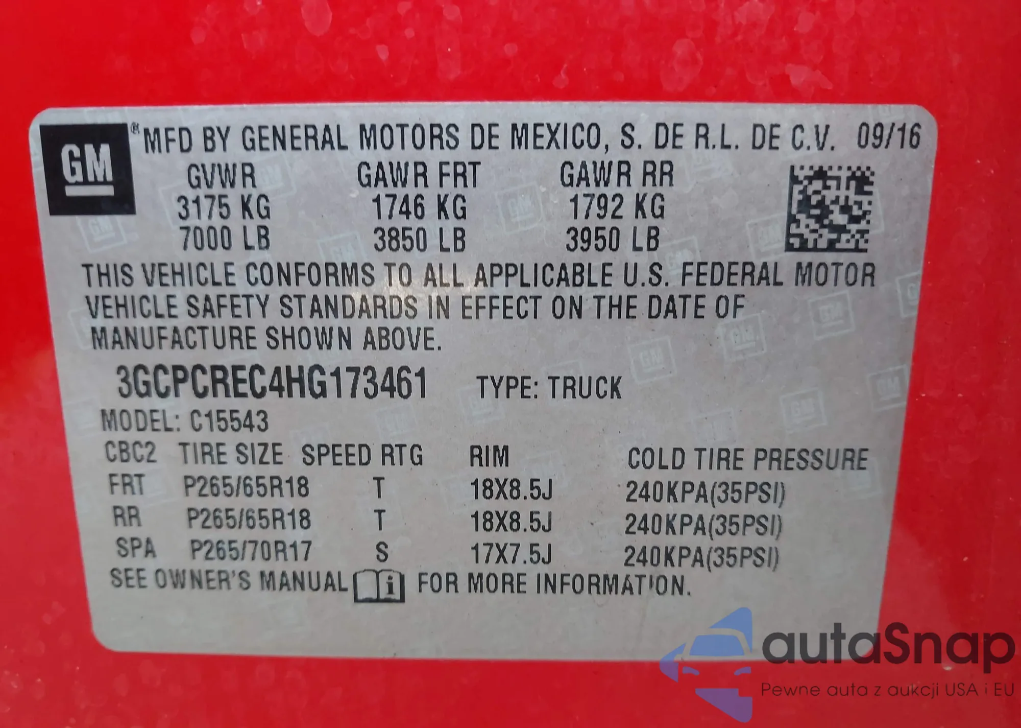• VIN 3GCPCREC4HG173461