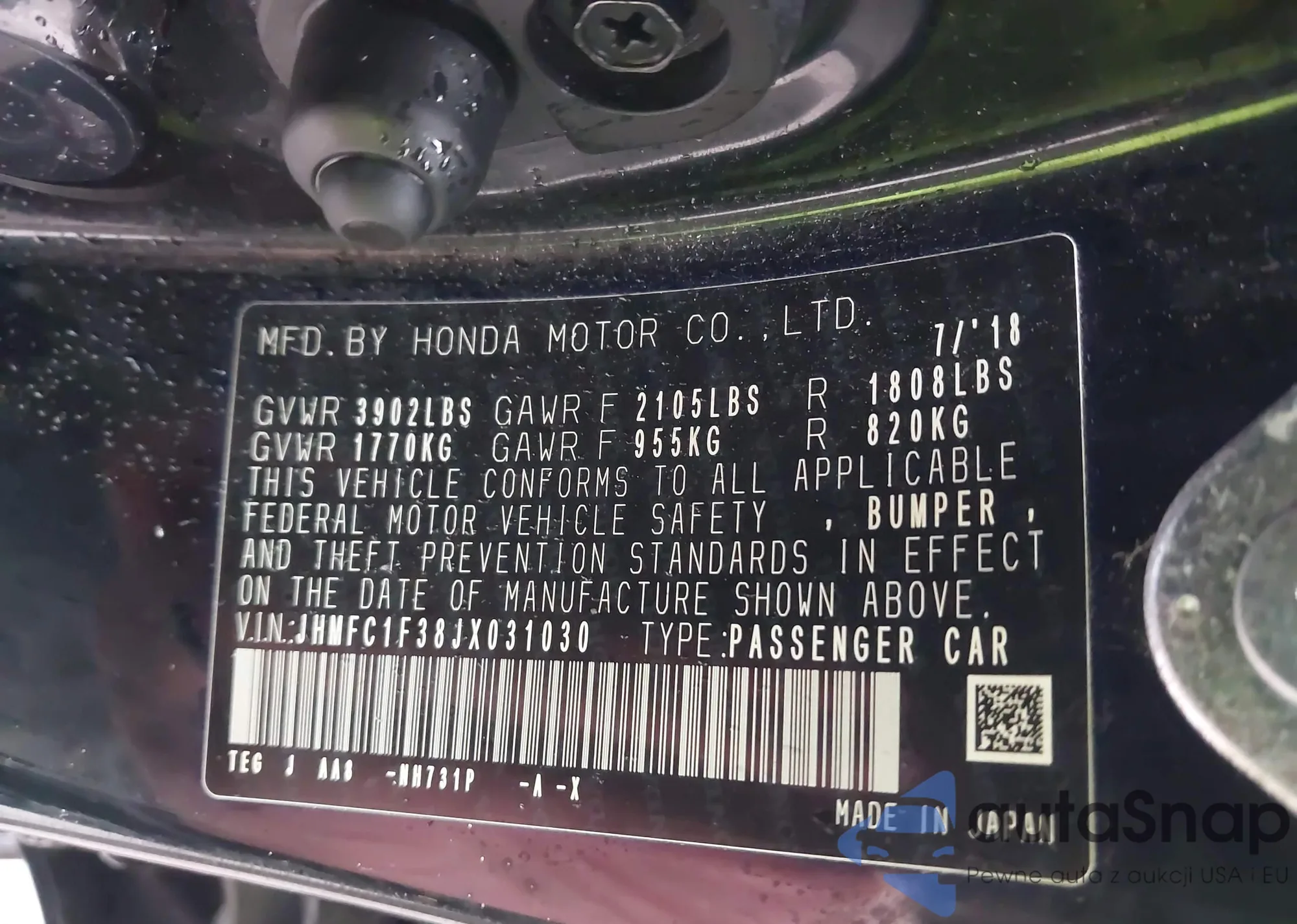 • VIN SHHFK7H6XMU413782