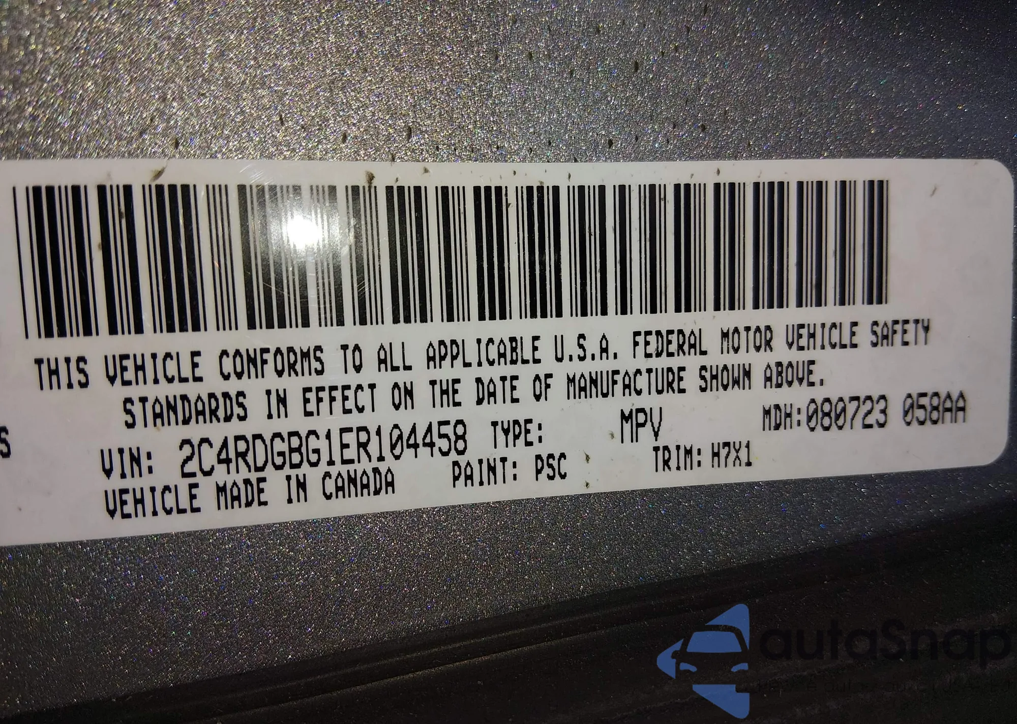 • VIN 2C4RDGBG1ER104458