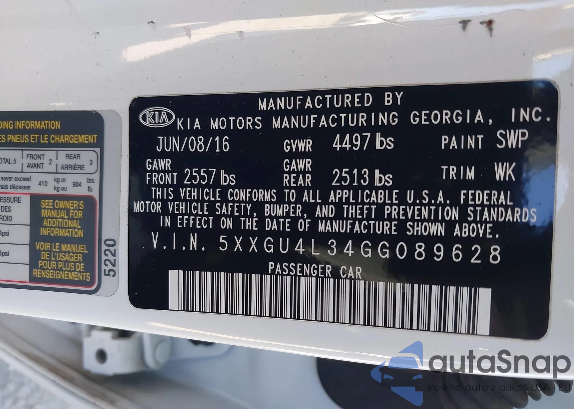 • VIN 5XXGU4L34GG089628