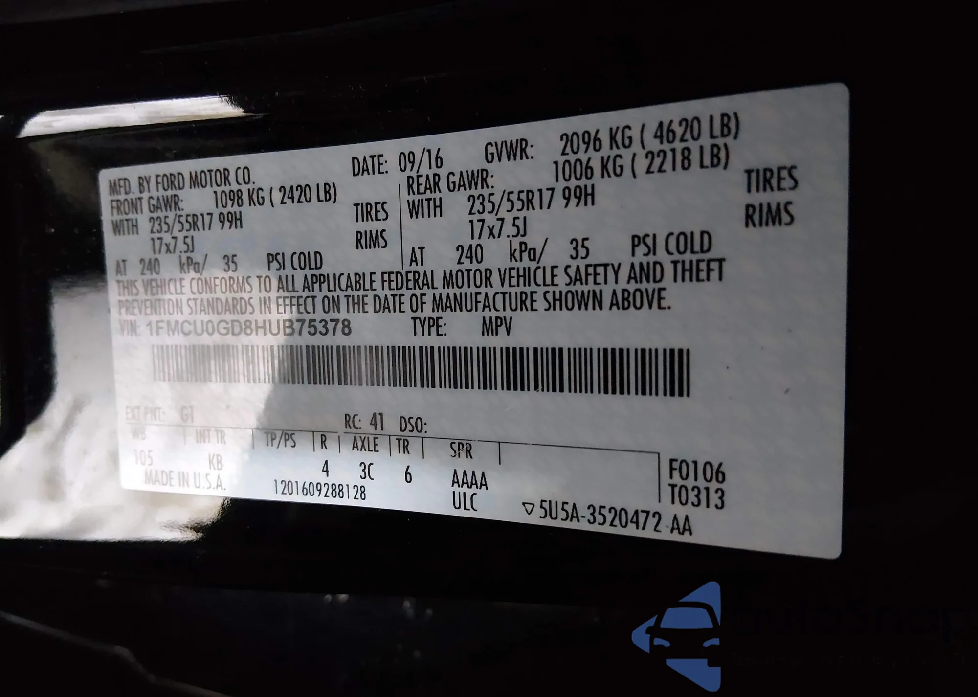 • VIN 1FMCU0GD8HUB75378