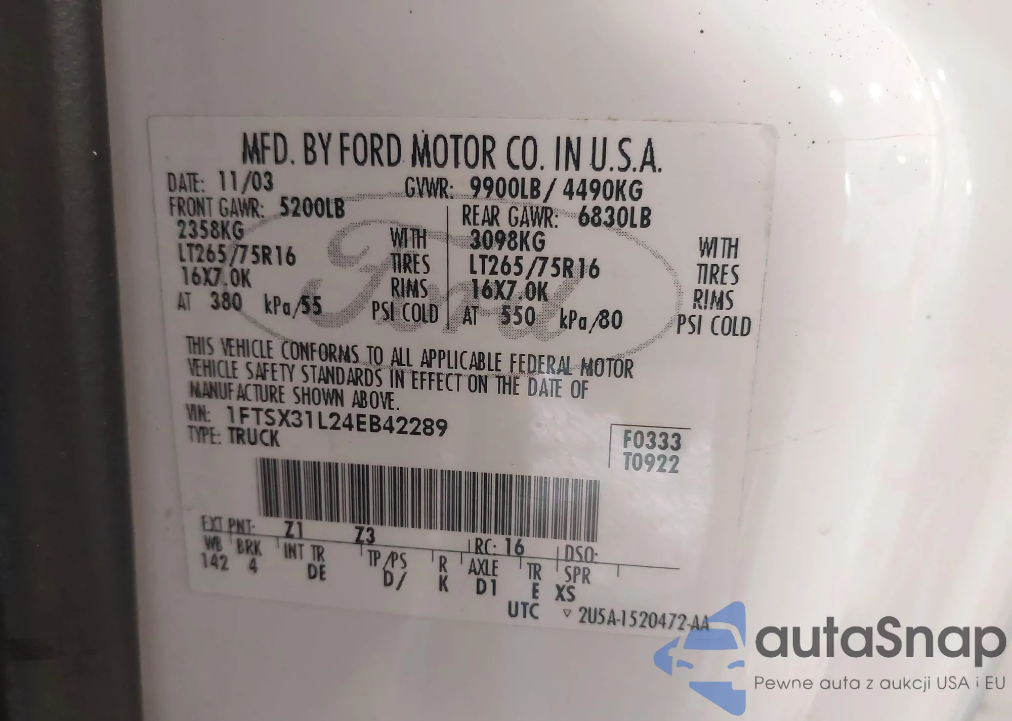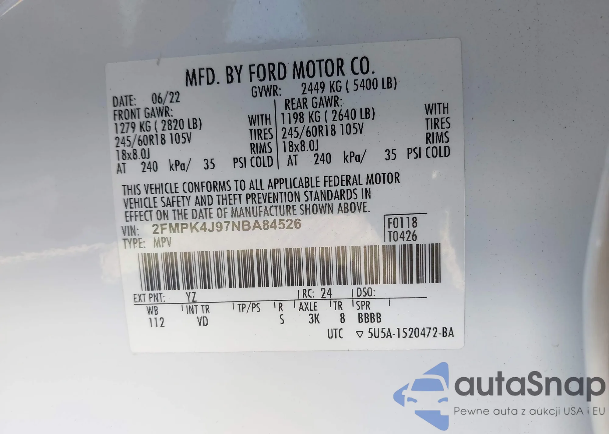 • VIN 1FMHK7B89CGA96372