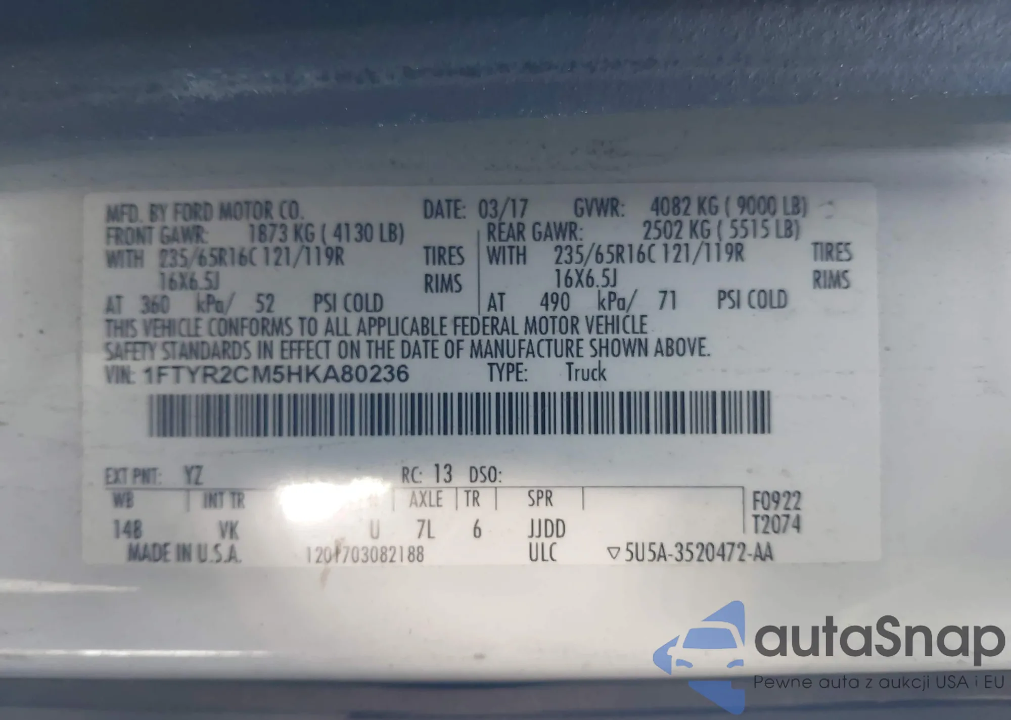 • VIN 1FTYR2CM5HKA80236