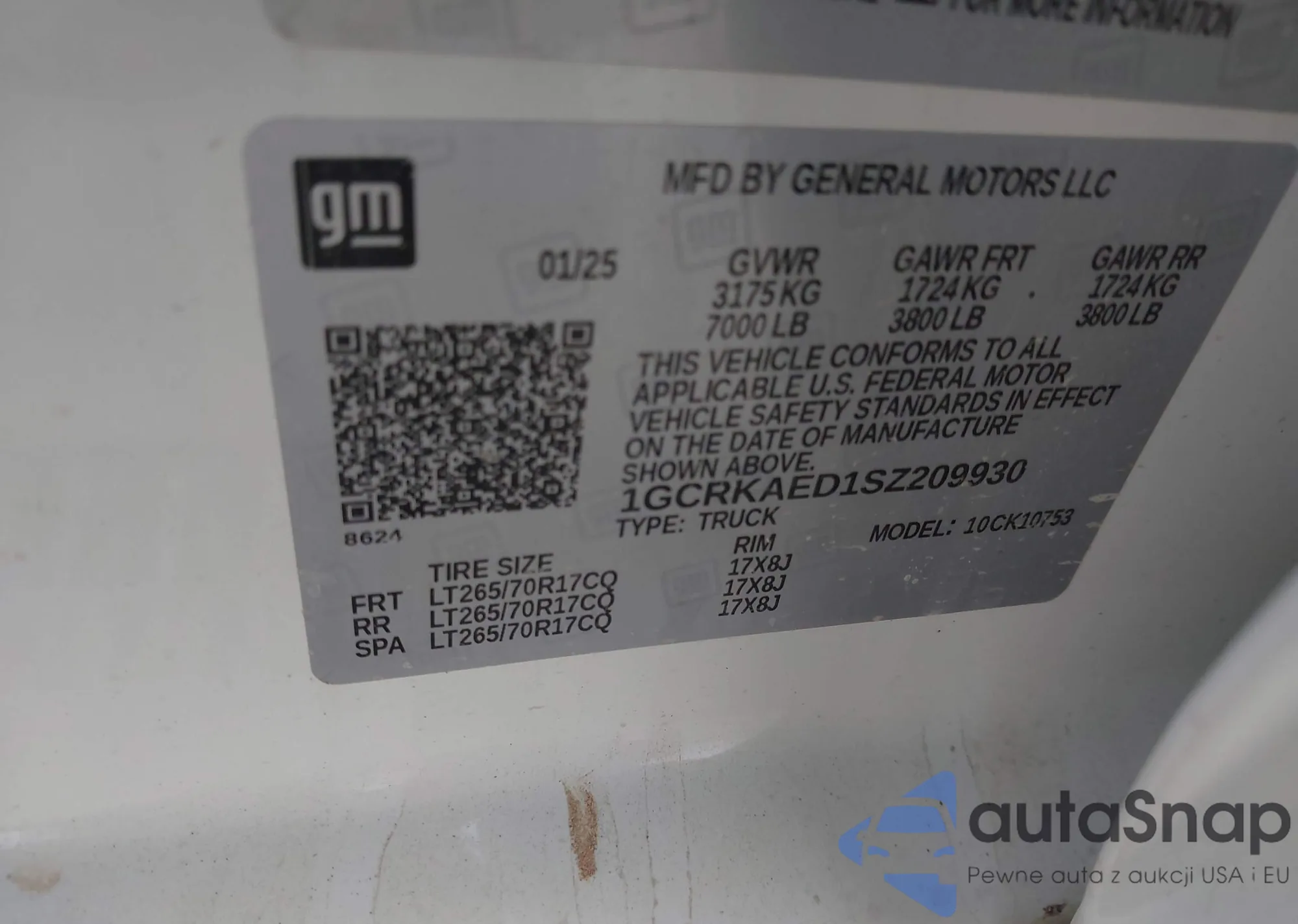 • VIN 1GCRKAED1SZ209930