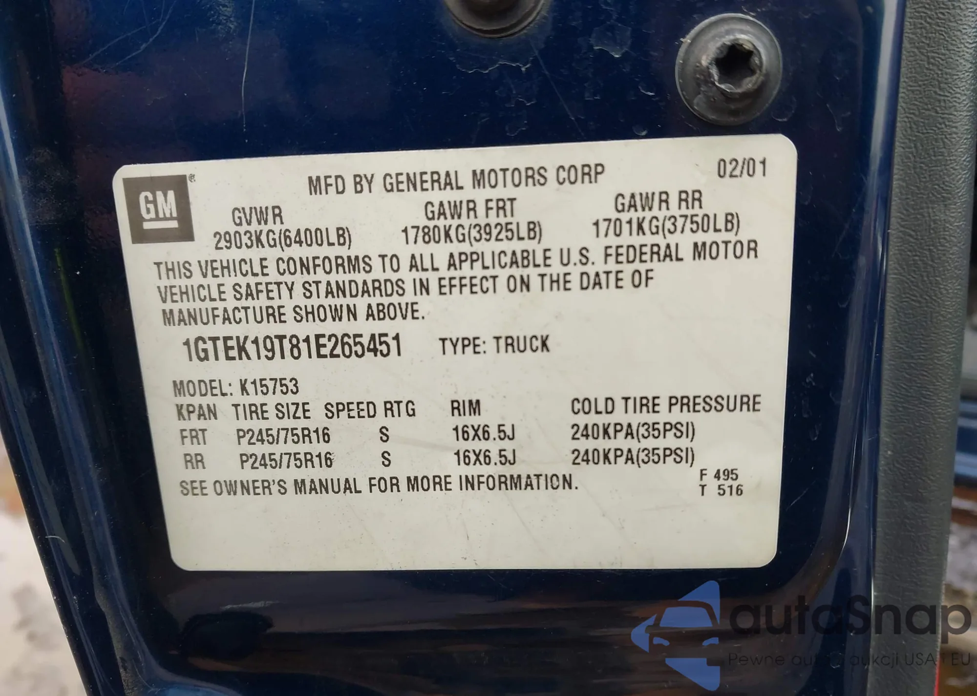 • VIN 1GTEK19T81E265451