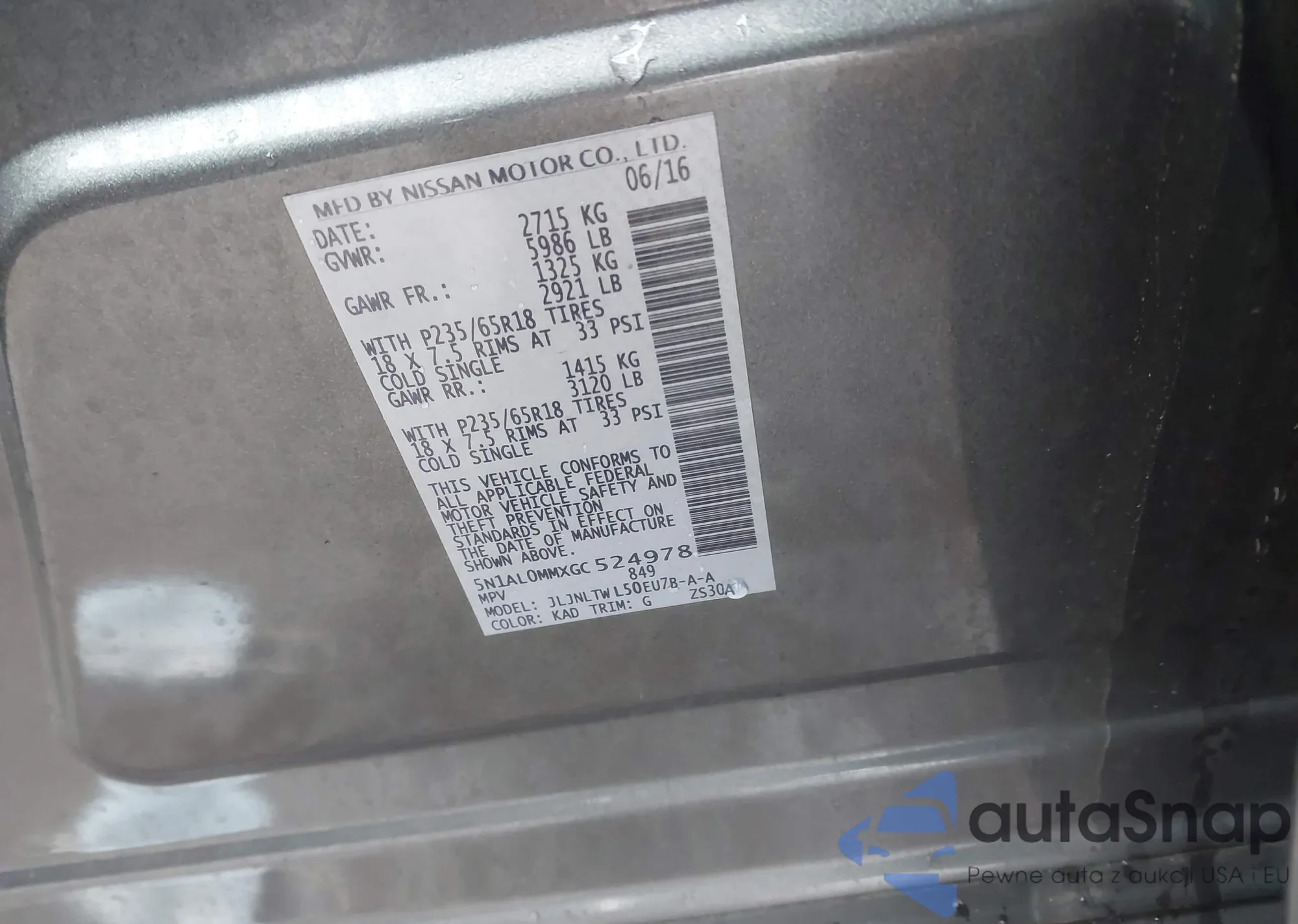 • VIN 5N1AL0MMXGC524978