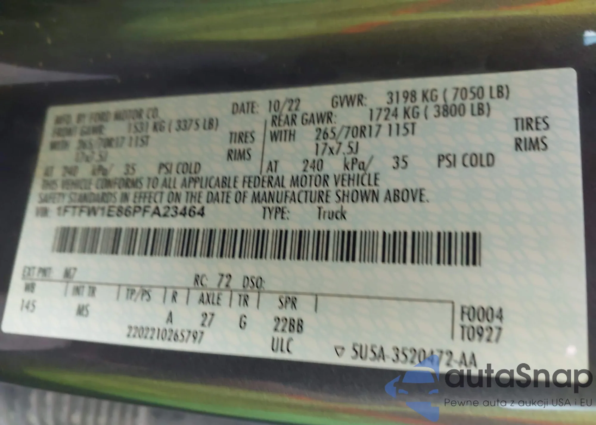 • VIN 1FTFW1E86PFA23464