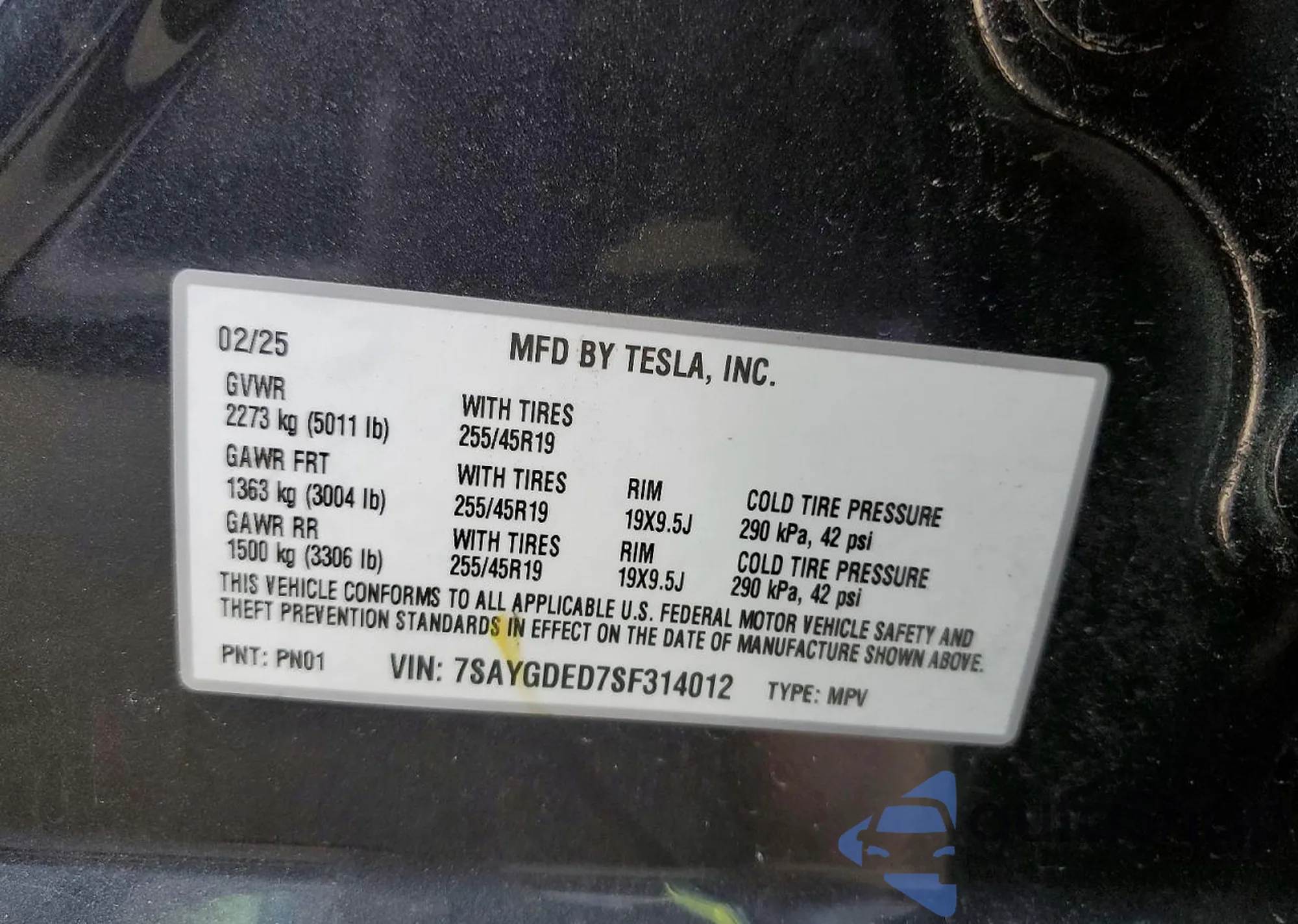 • VIN 7SAYGDED7SF314012