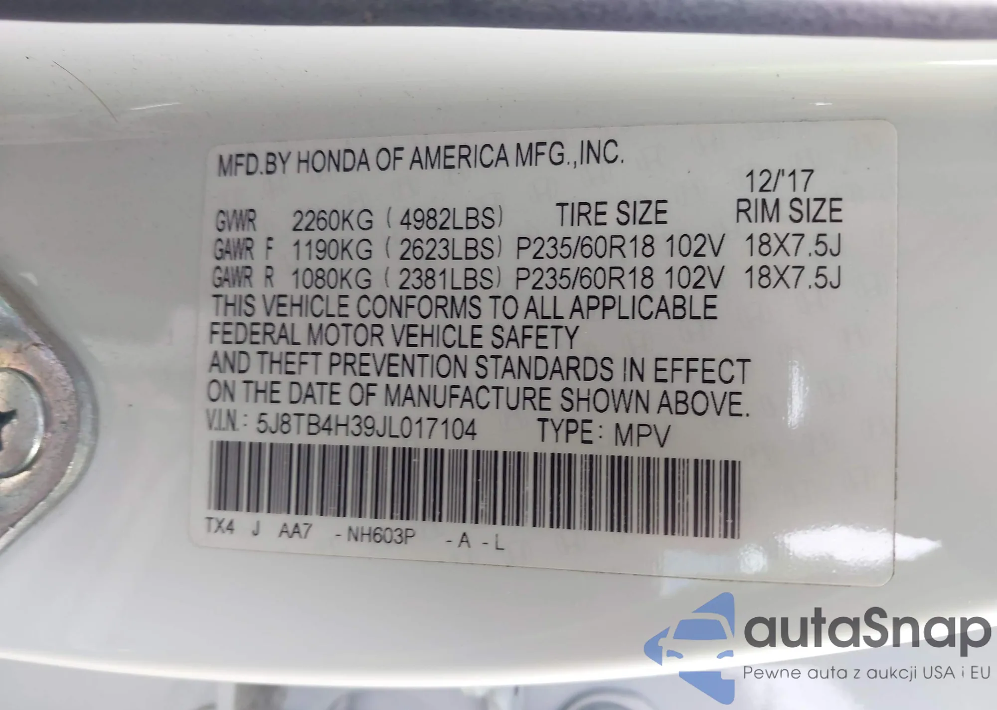 LOT: 43949877 VIN: KMHC65LC8JU073332