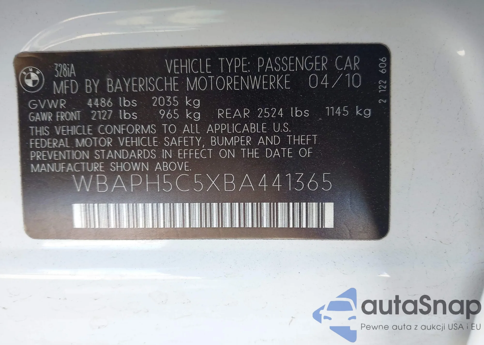 LOT: 44393189 VIN: WBAPH5C5XBA441365