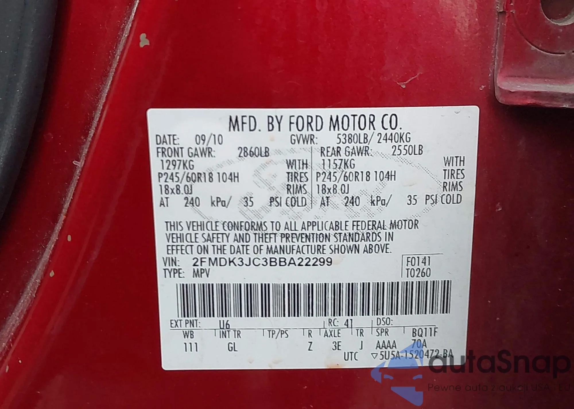 • VIN 2FMDK3JC3BBA22299