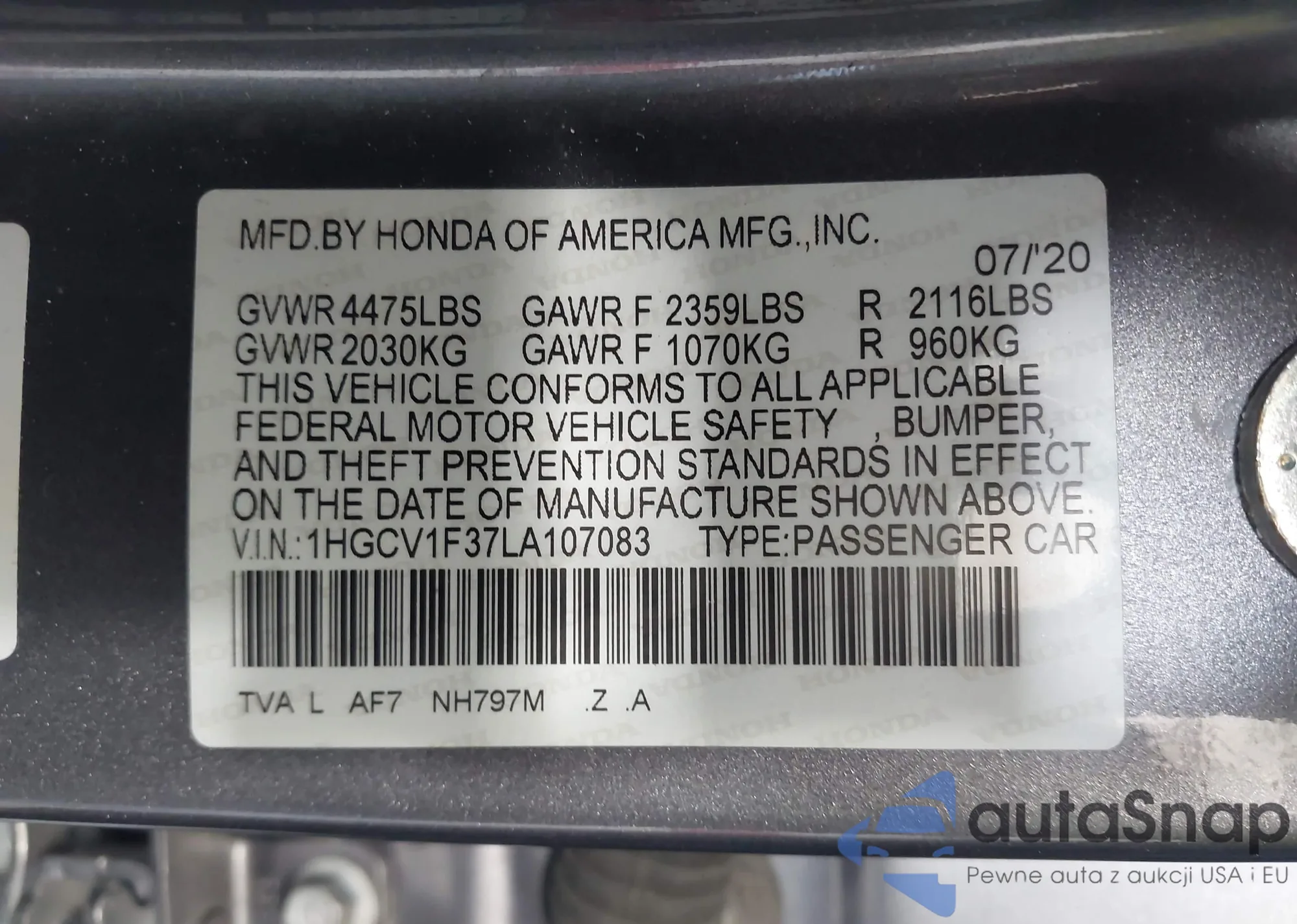 • VIN 5J6RW2H94LL024285
