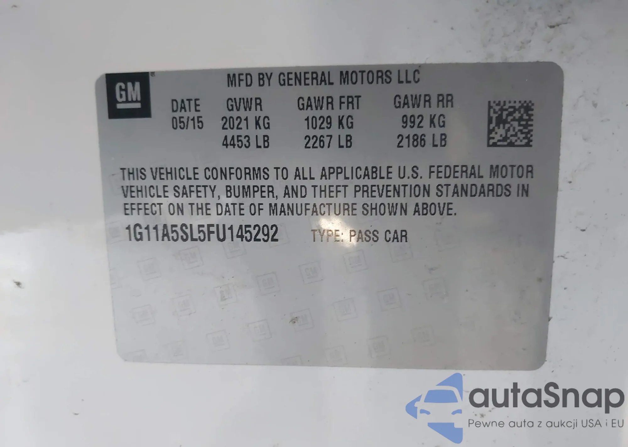 • VIN 1G11A5SL5FU145292