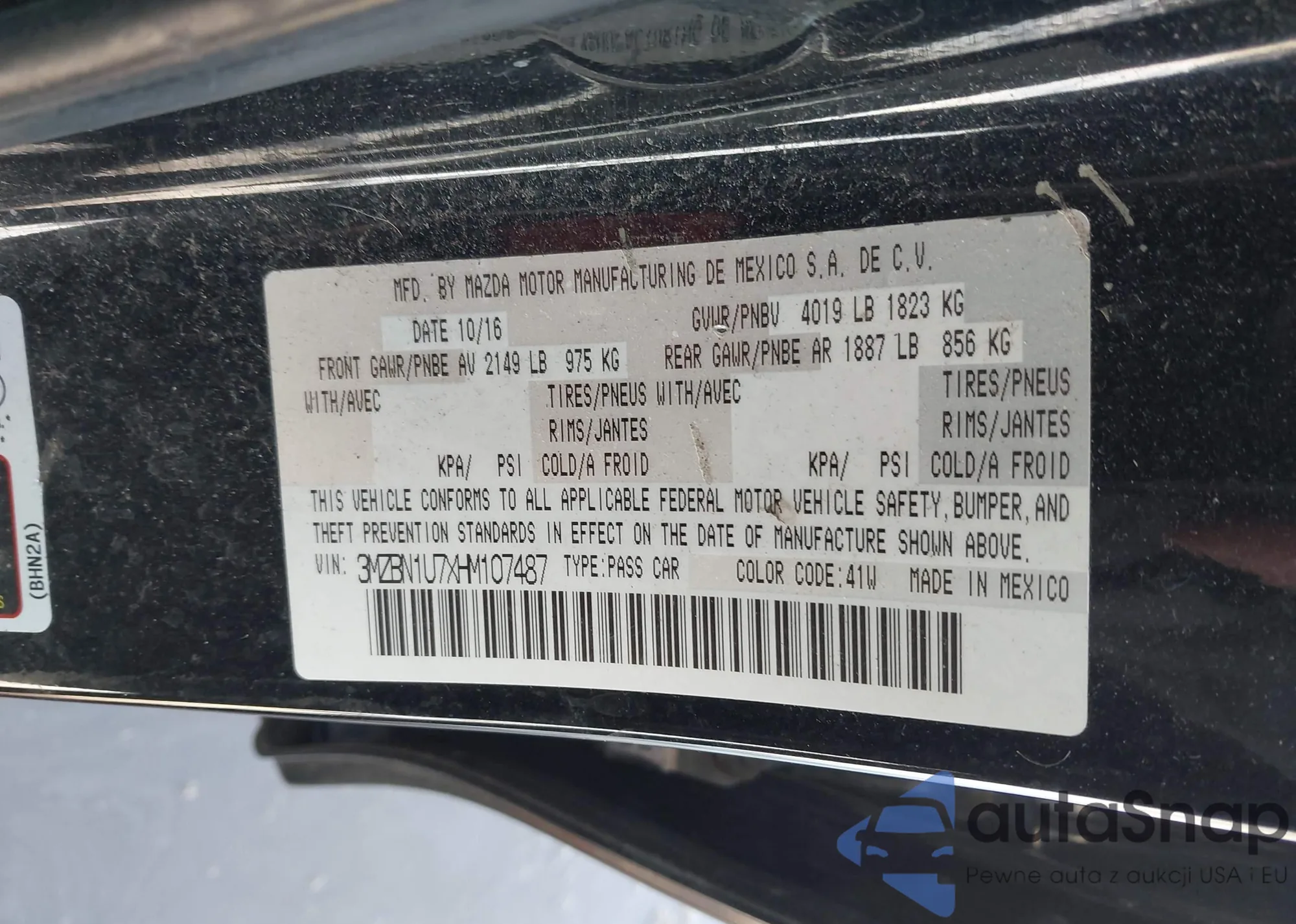 • VIN 3MZBN1U7XHM107487