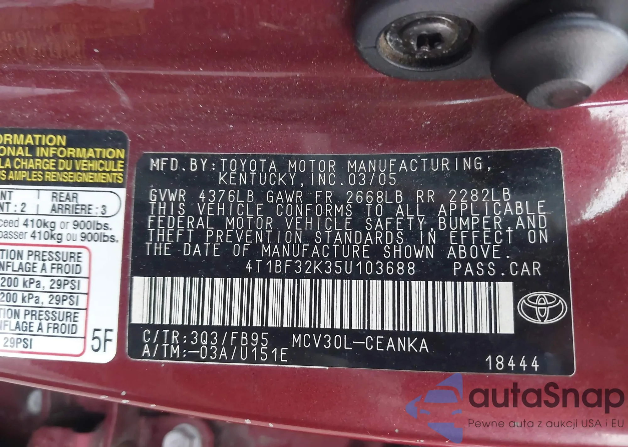 • VIN 4T1BF32K35U103688