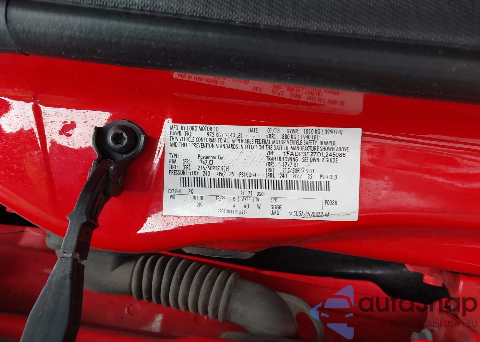 • VIN 1FADP3F27DL245086