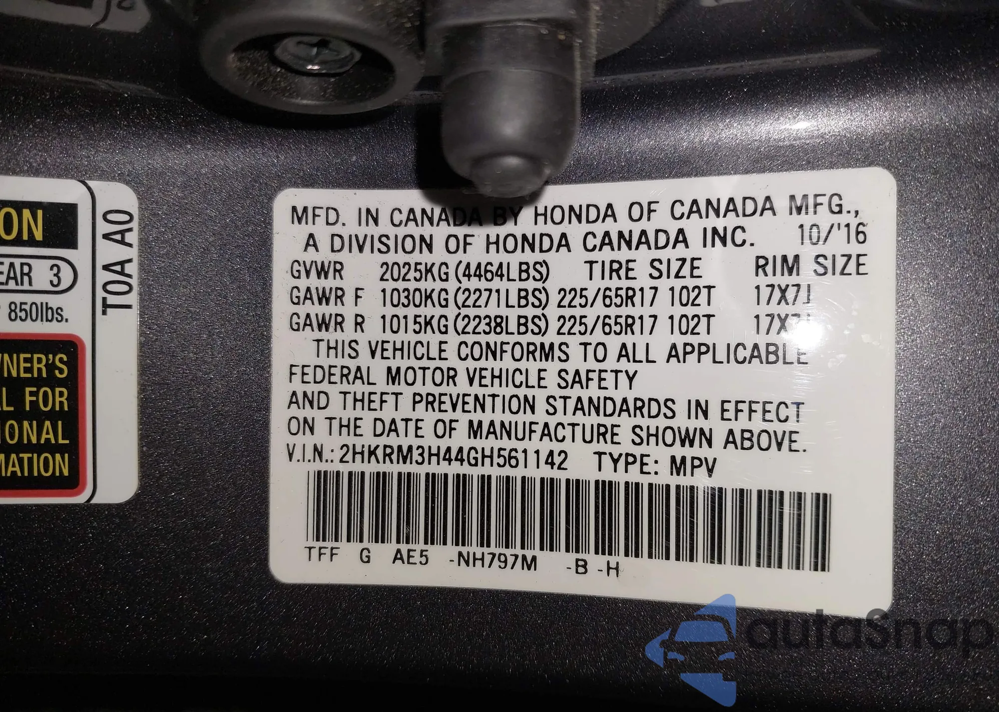 • VIN 2HKRM3H44GH561142