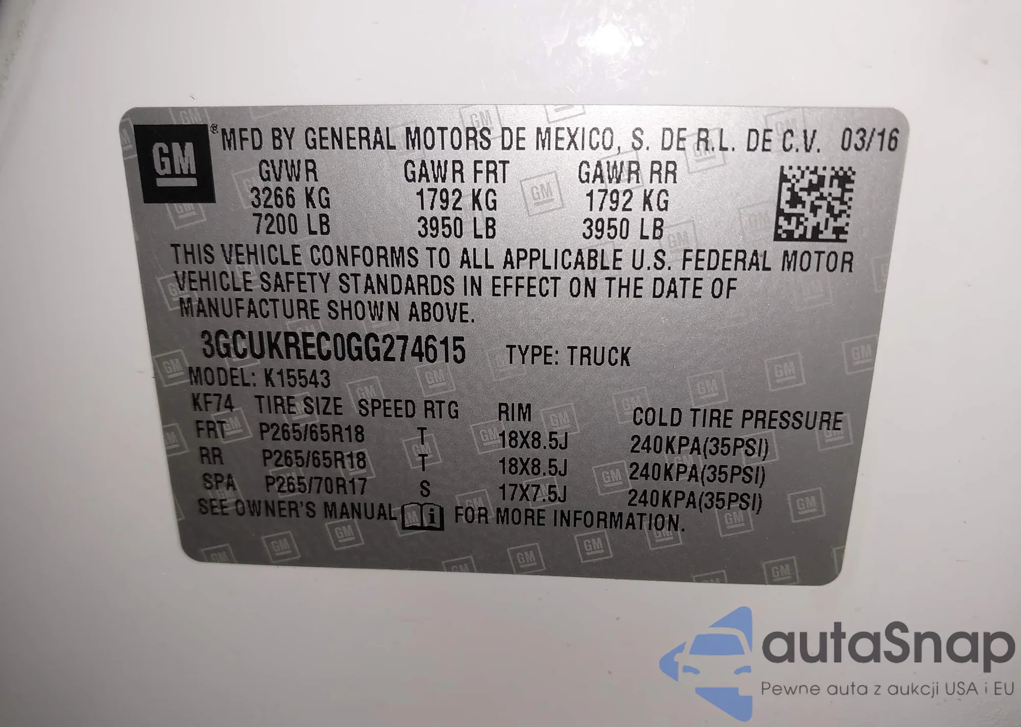 • VIN 3GCUKREC0GG274615