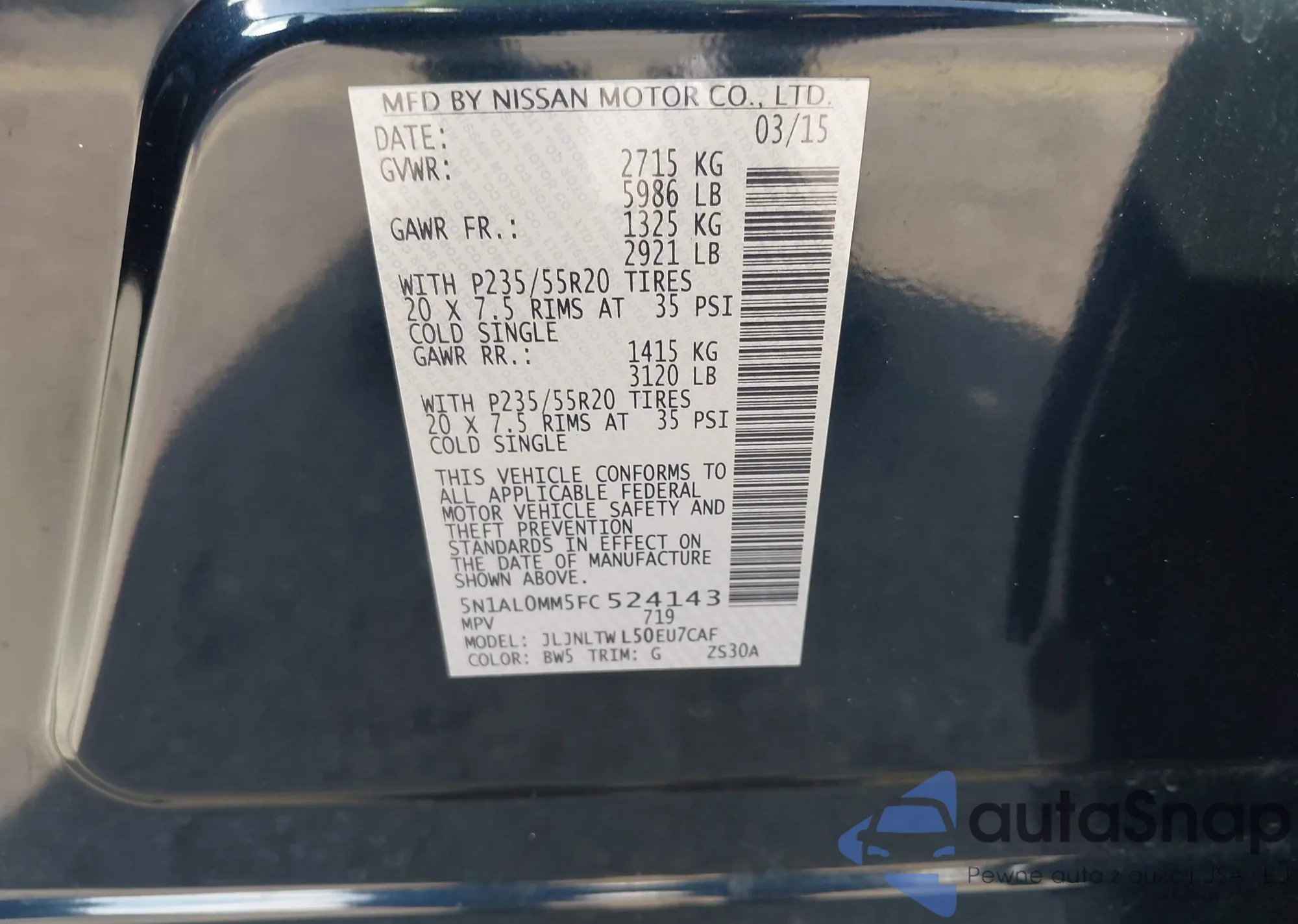 LOT: 44316488 VIN: JN8CS1MW8FM480659