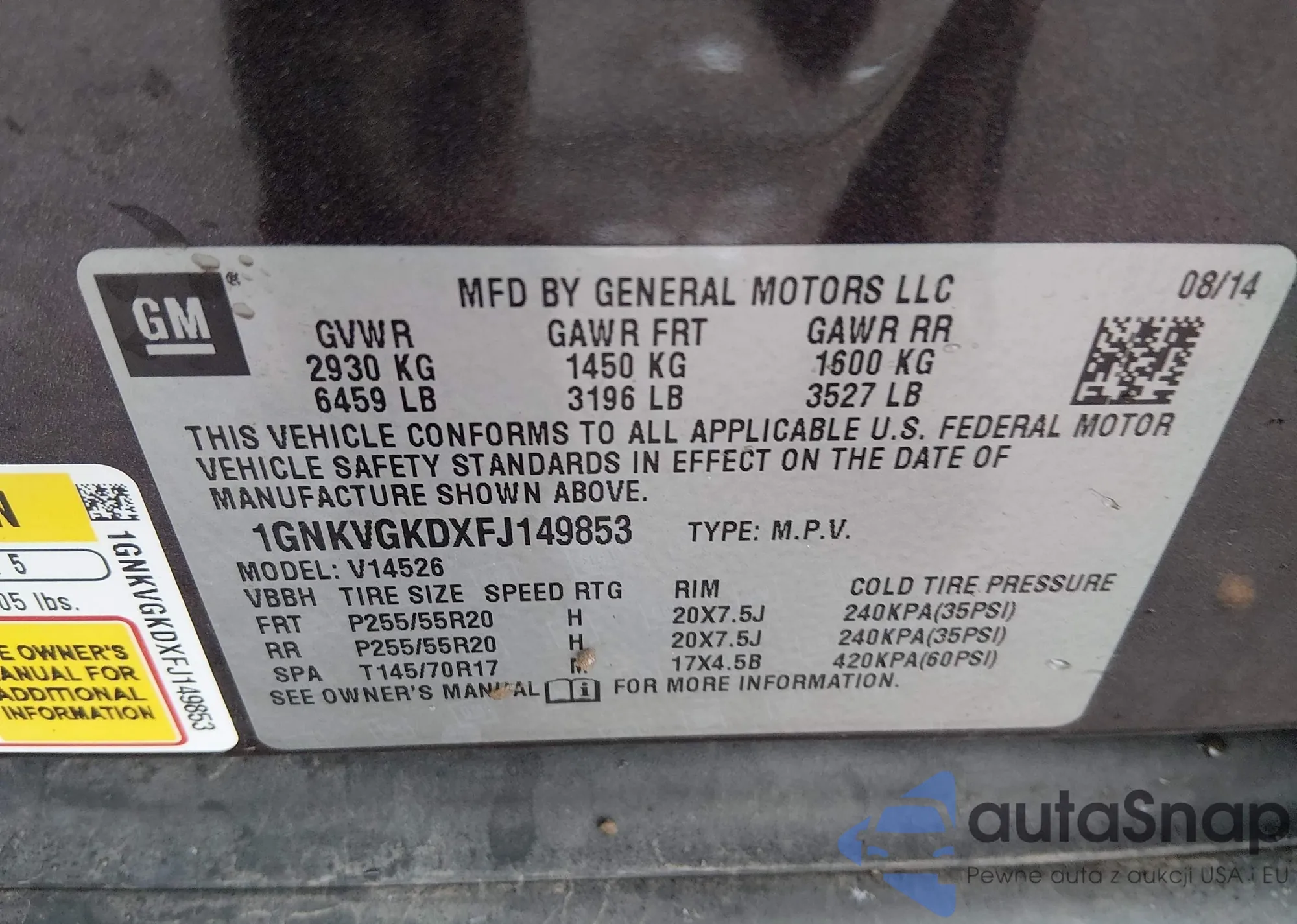 LOT: 43686054 VIN: 1GNKVGKDXFJ149853