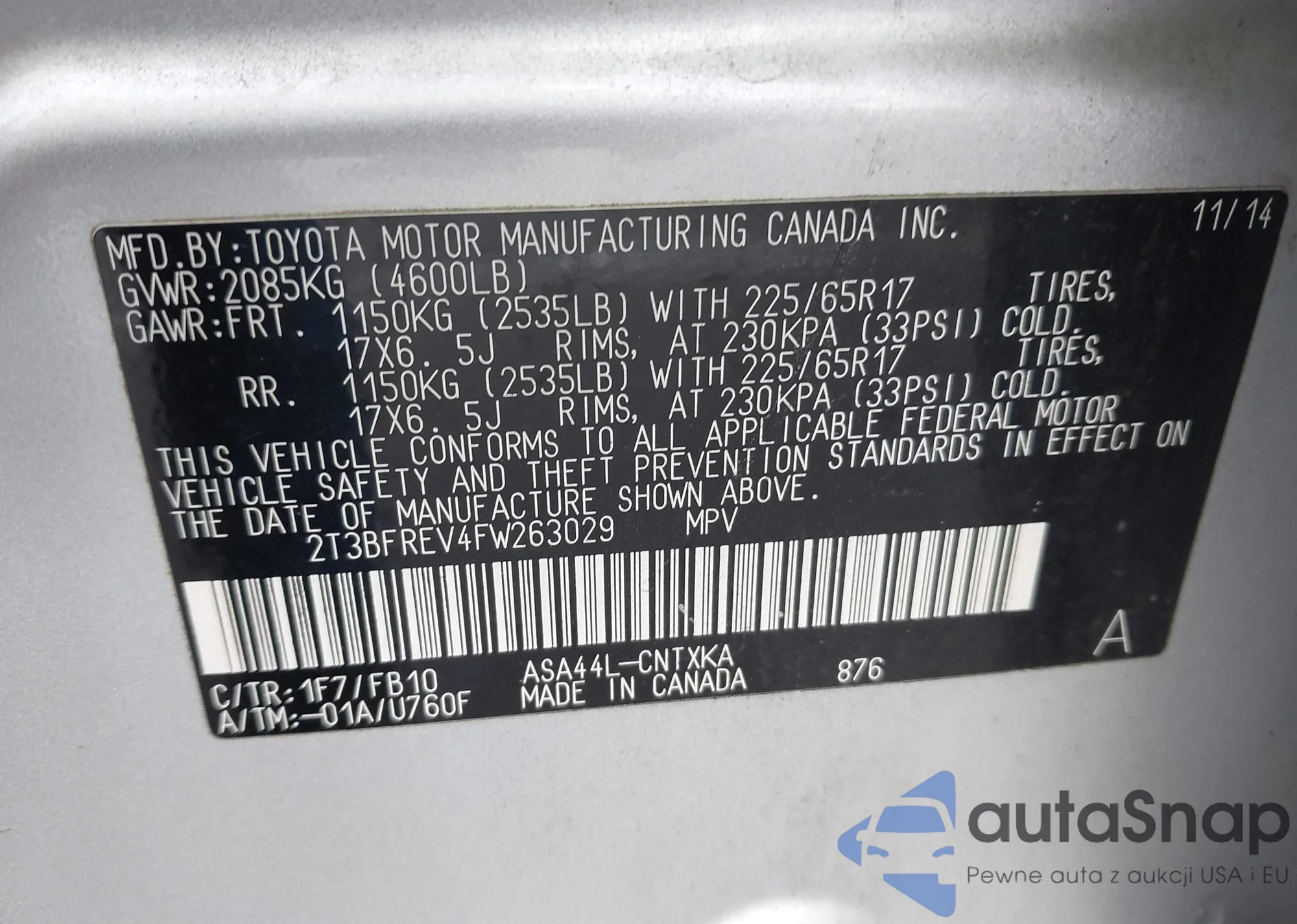 LOT: 44038095 VIN: 4T1DAACKXSU519288