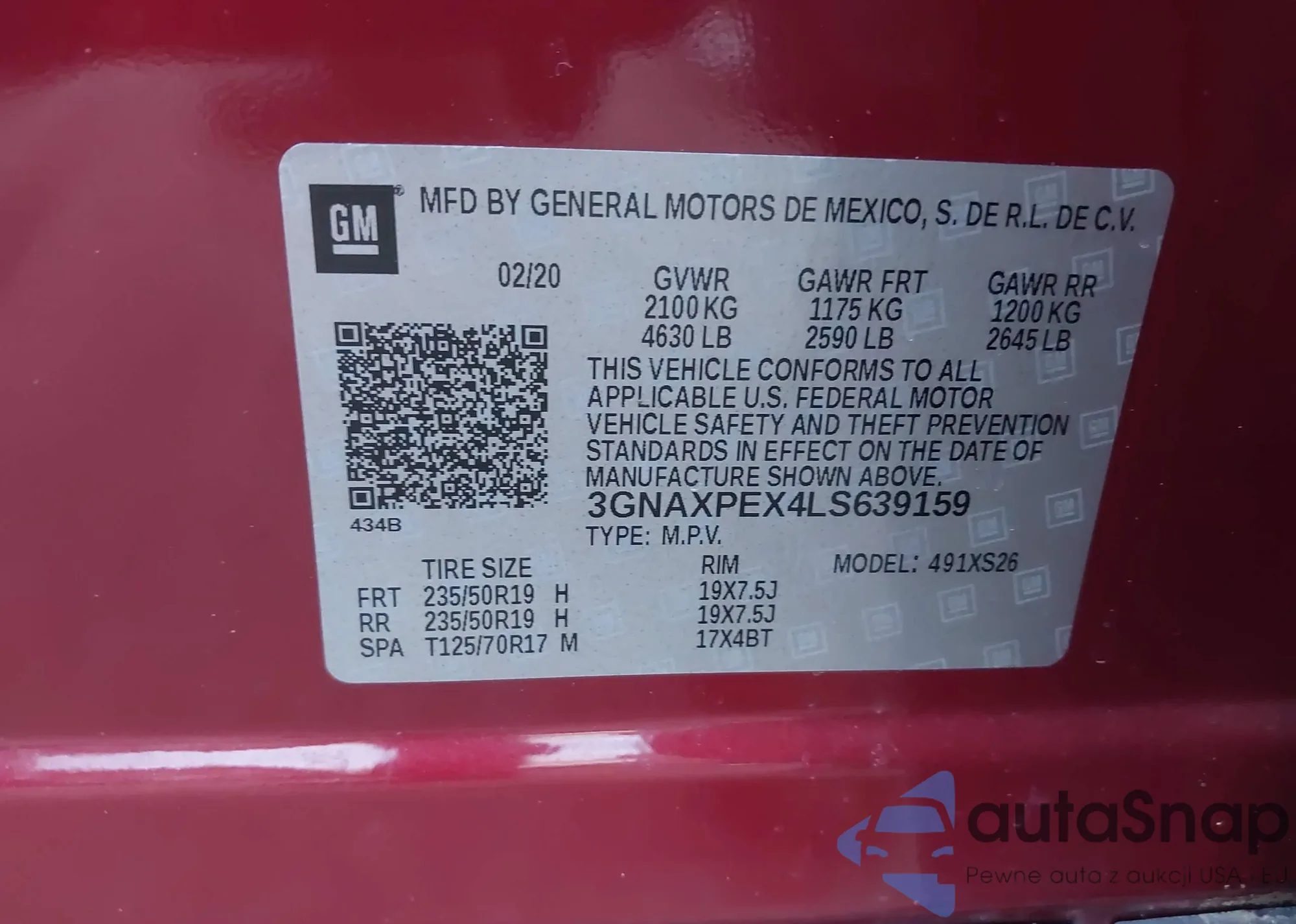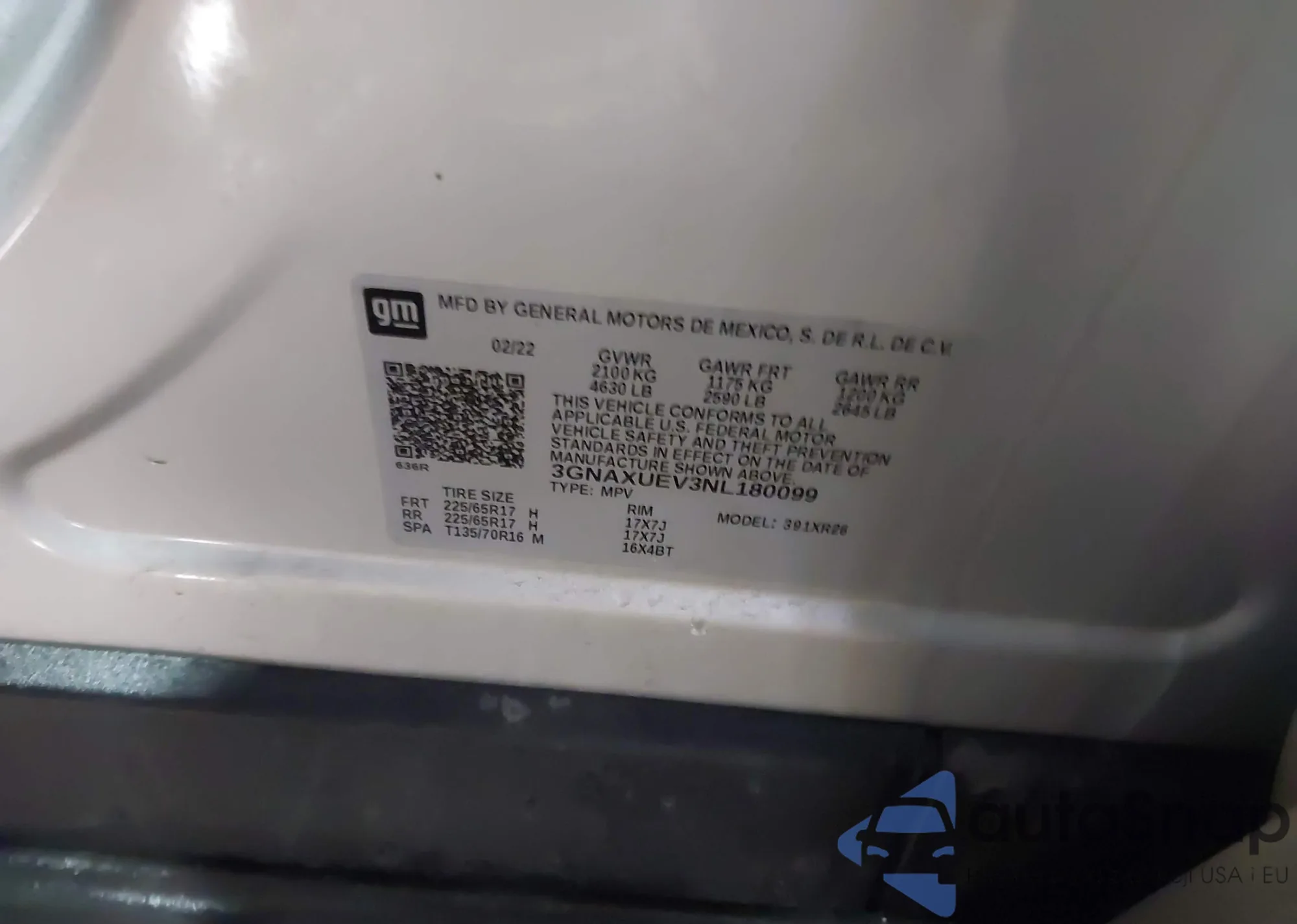 LOT: 44019353 VIN: 3GNAXUEV3NL180099