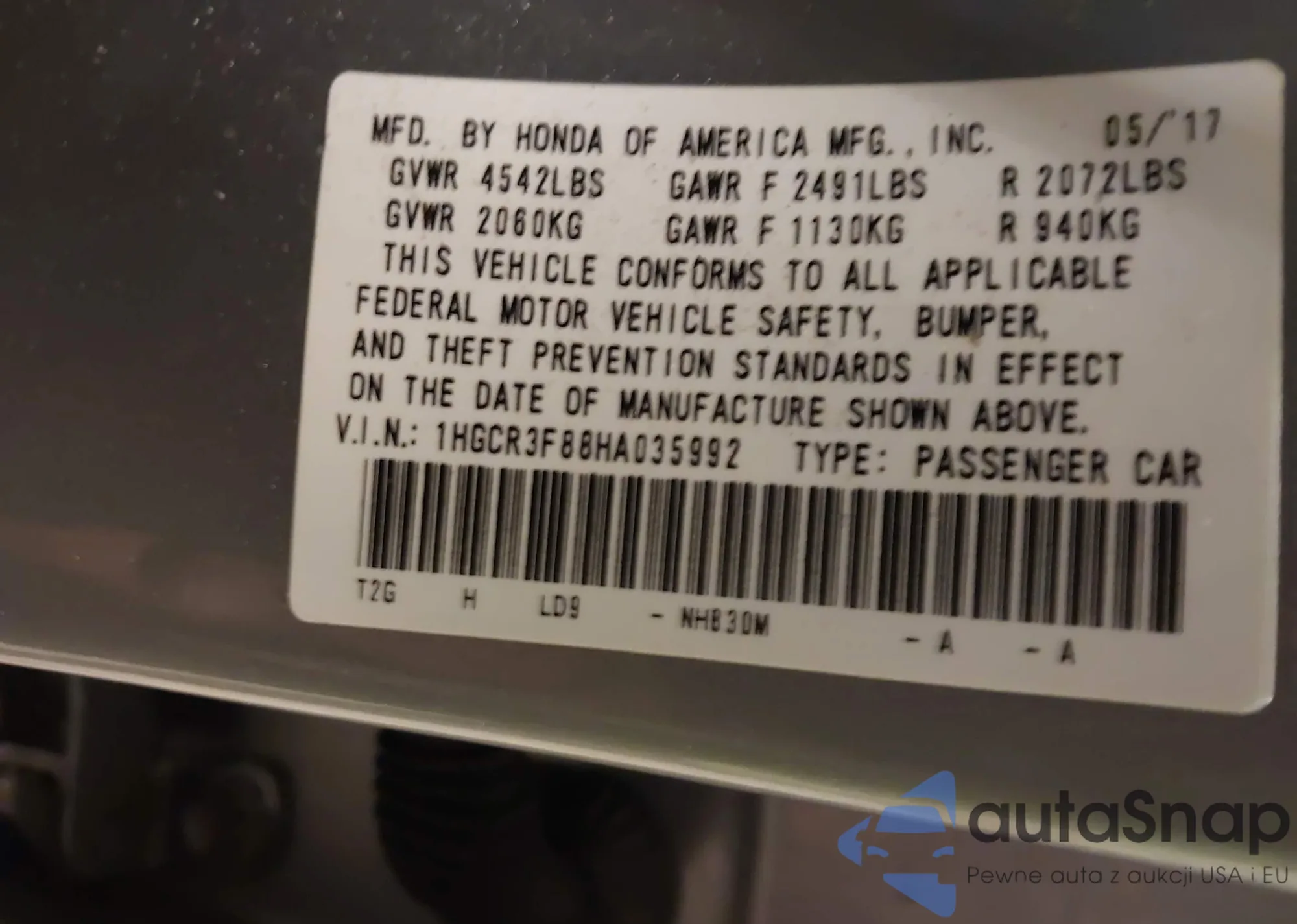 • VIN 5FNRL5H60BB012657