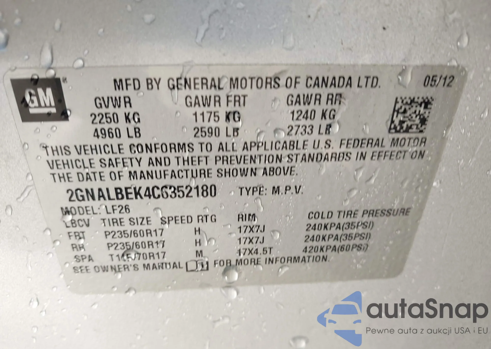 • VIN 2GNALBEK4C6352180