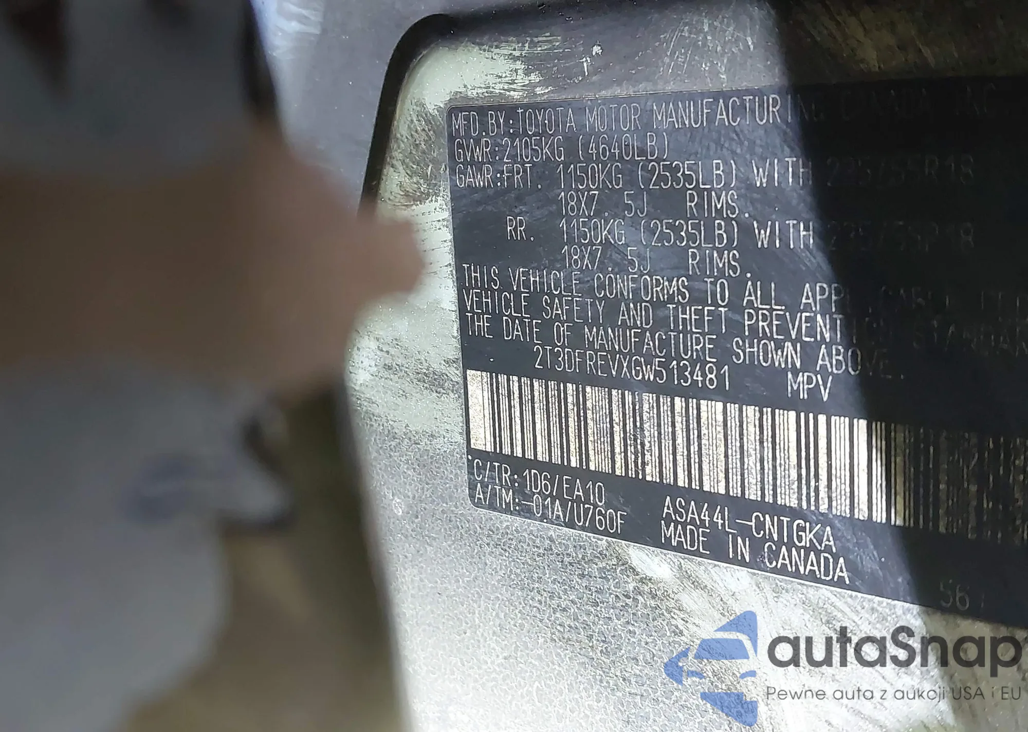 • VIN 2T3DFREVXGW513481