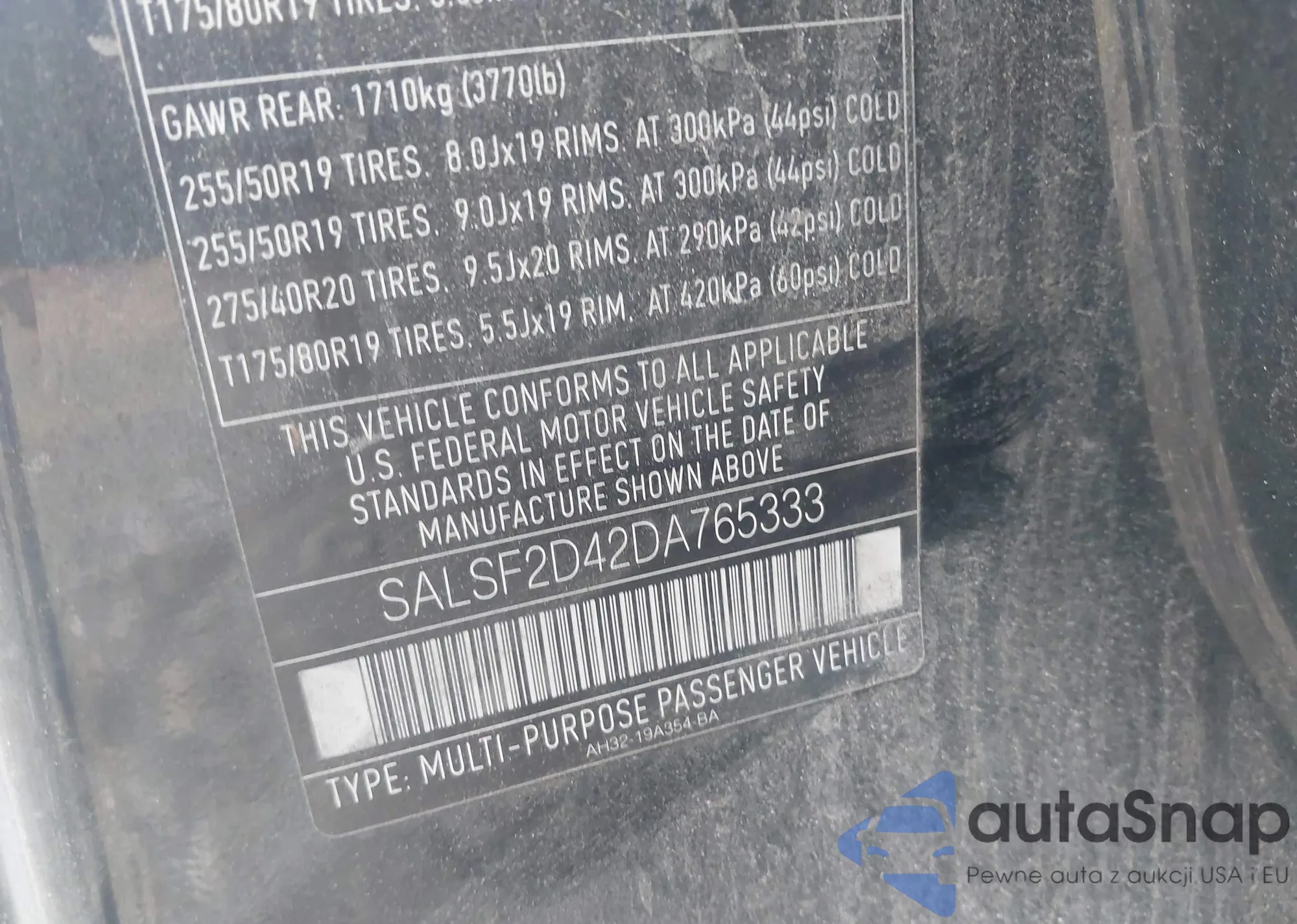 • VIN SALSF2D42DA765333