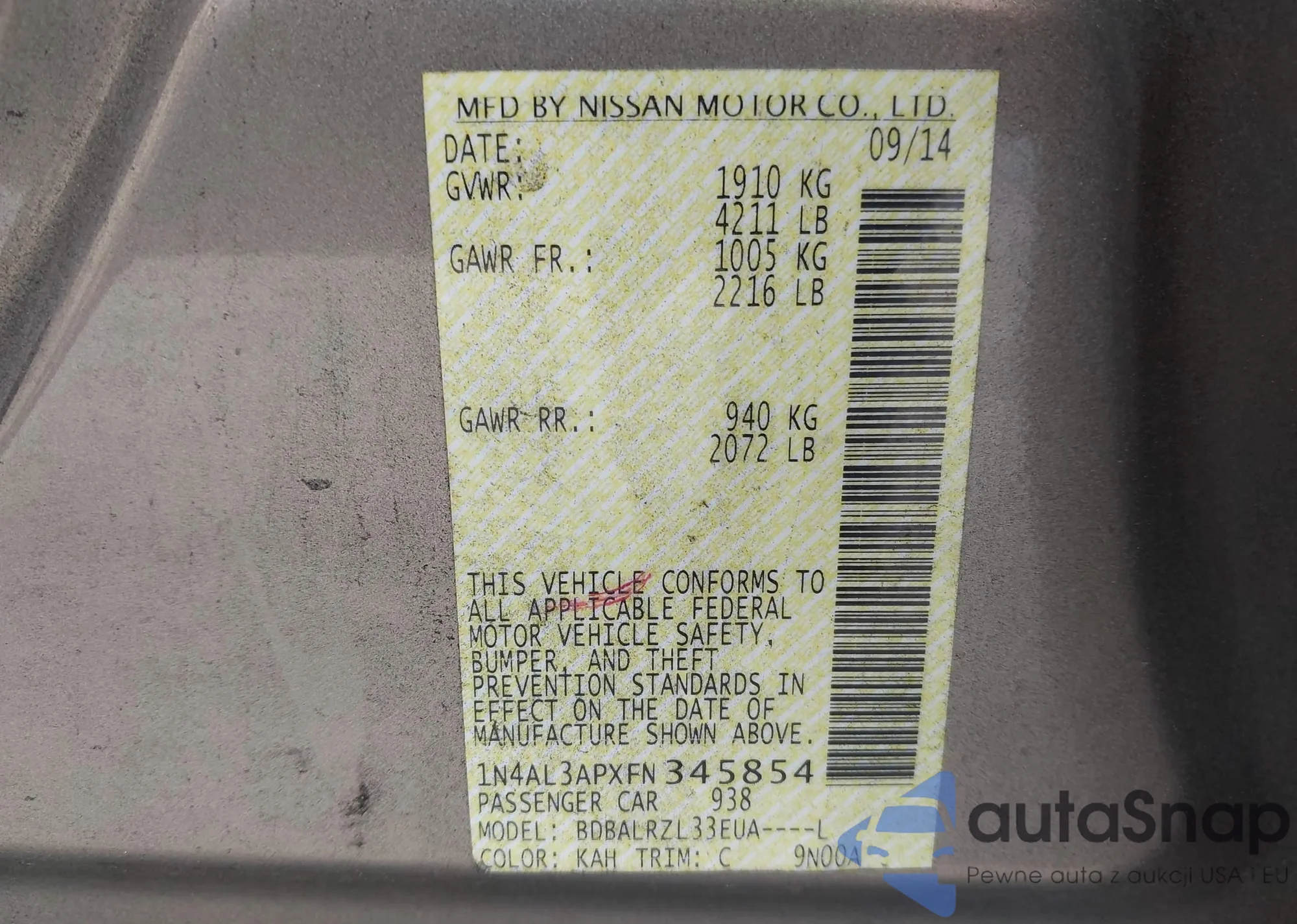 • VIN 1N4AL3APXFN345854