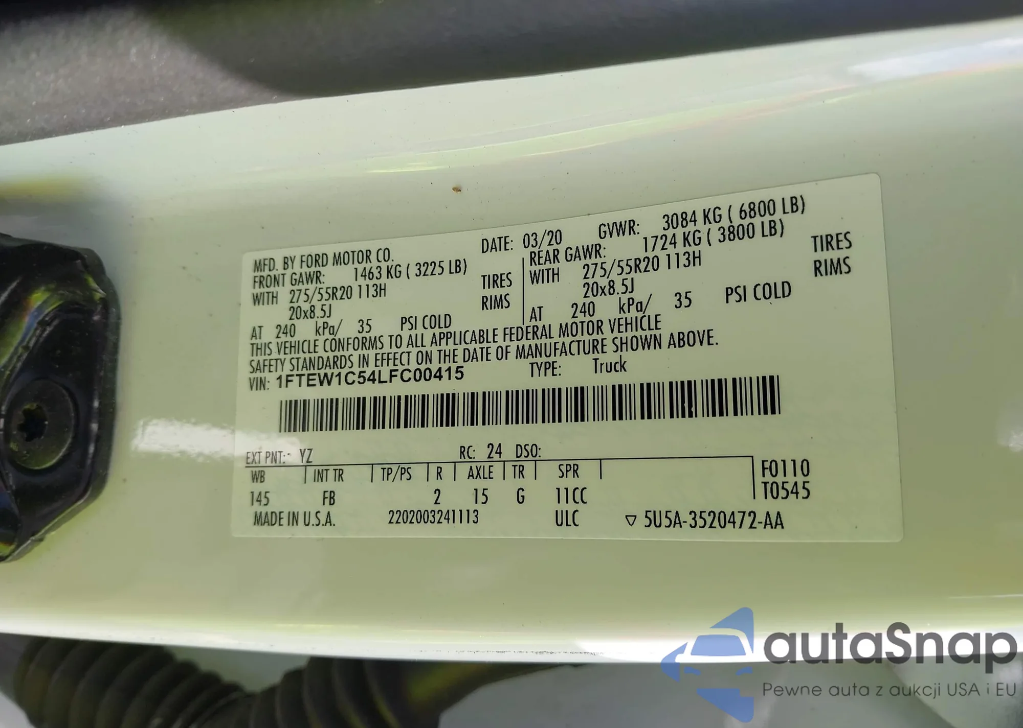 LOT: 44007775 VIN: 3GKALVEV1NL269913