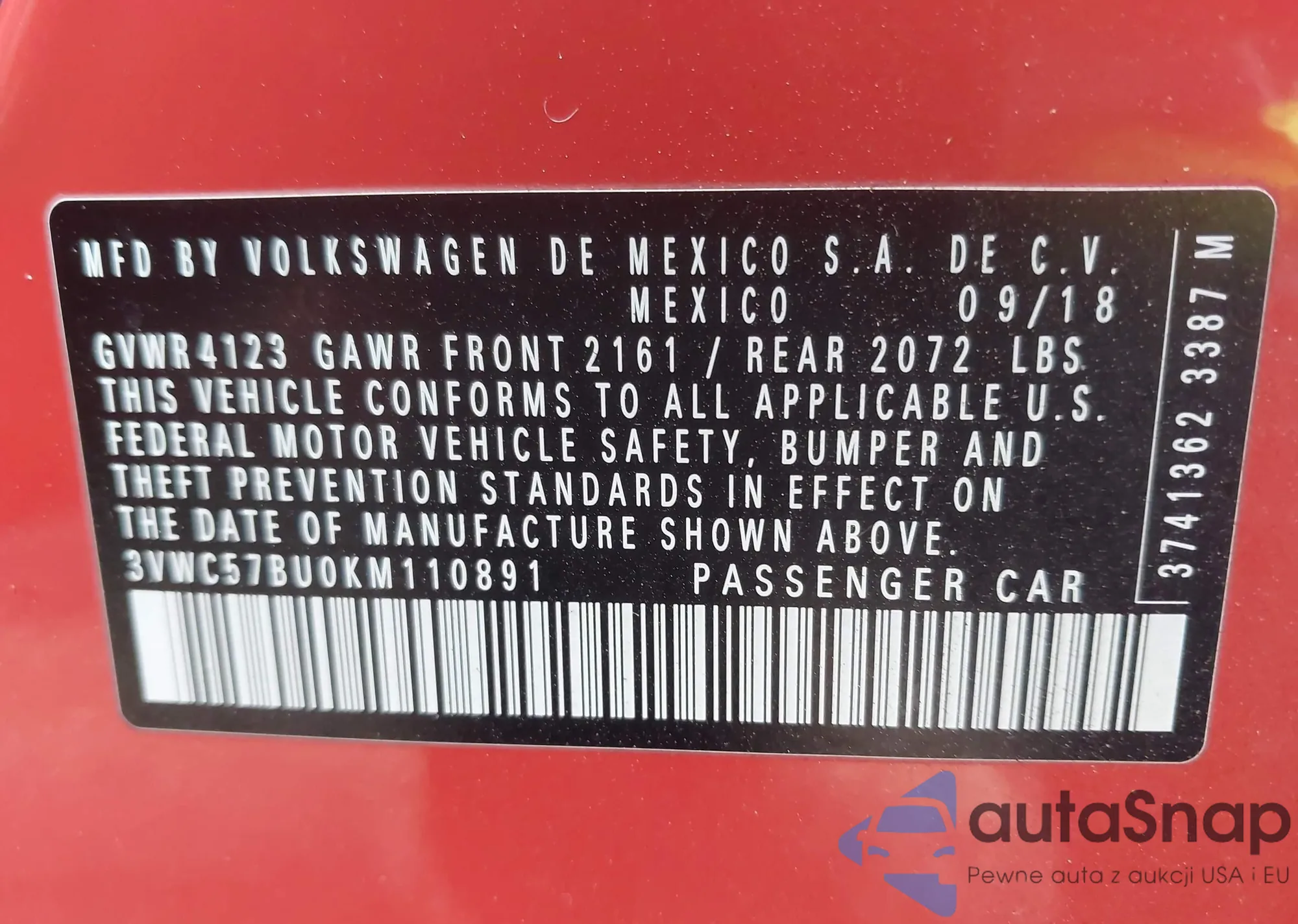 • VIN 3VWC57BU0KM110891