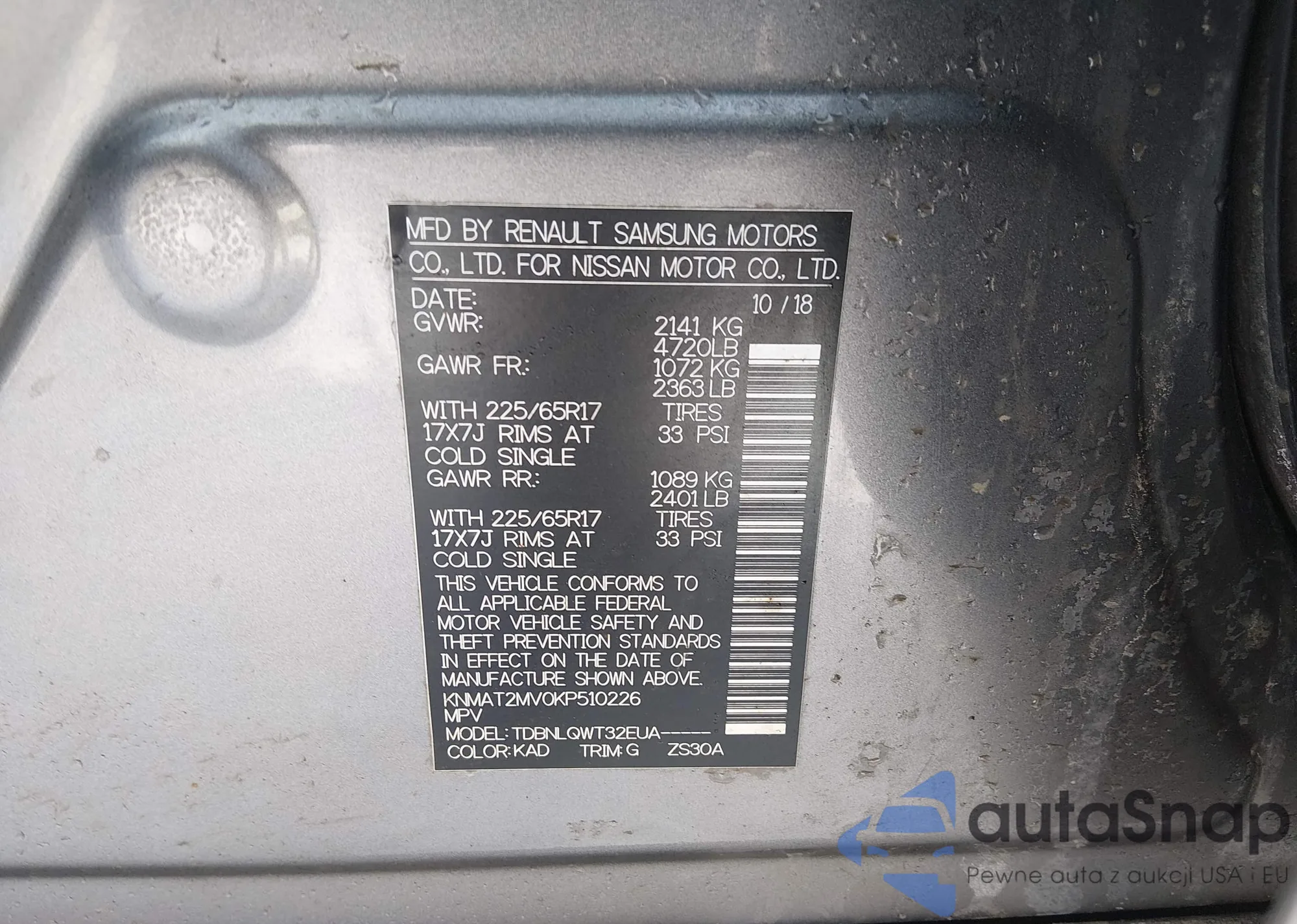 LOT: 44306090 VIN: WA1VAAF71JD047474