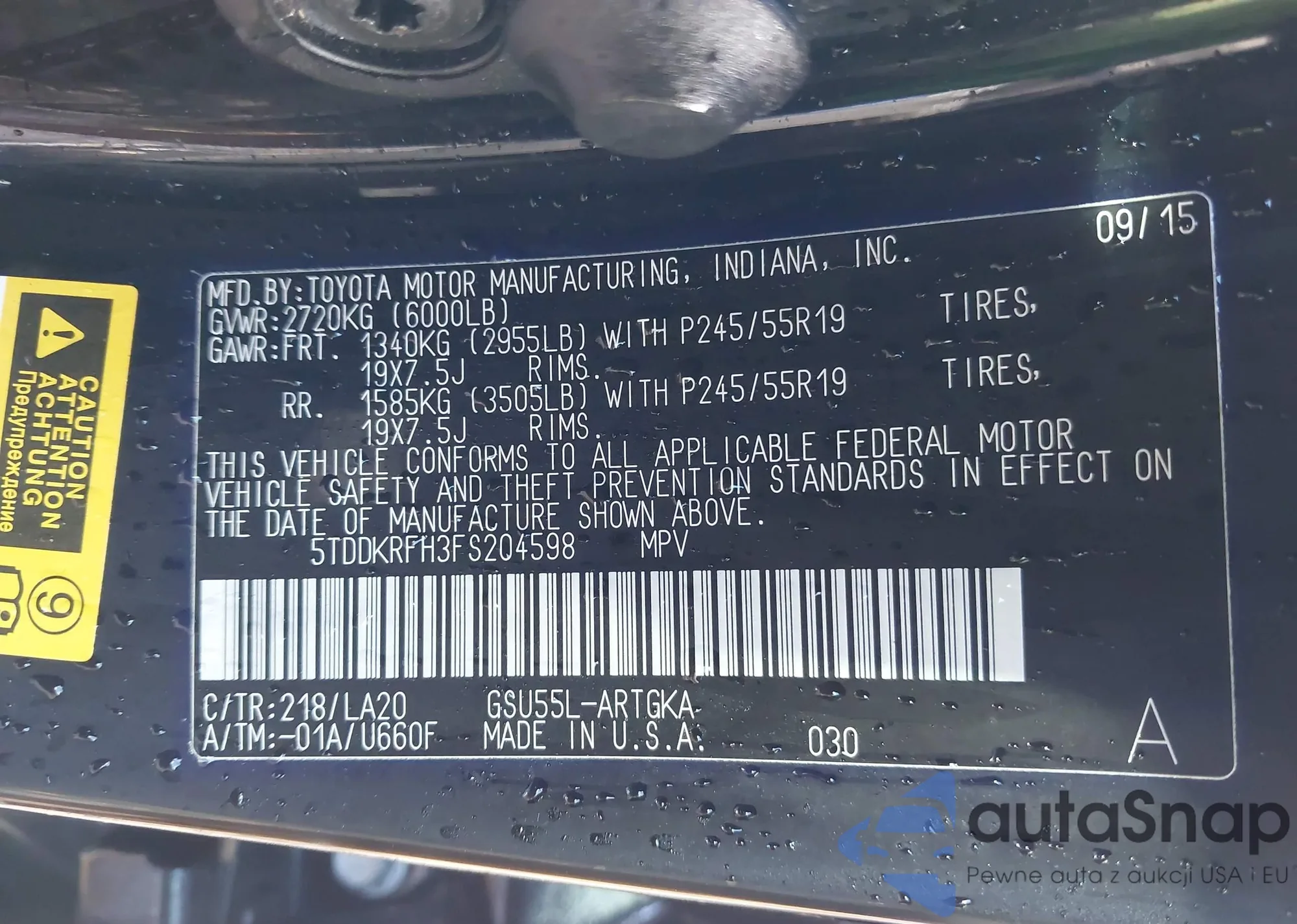 LOT: 44352810 VIN: 5TDJK3DC3FS119753