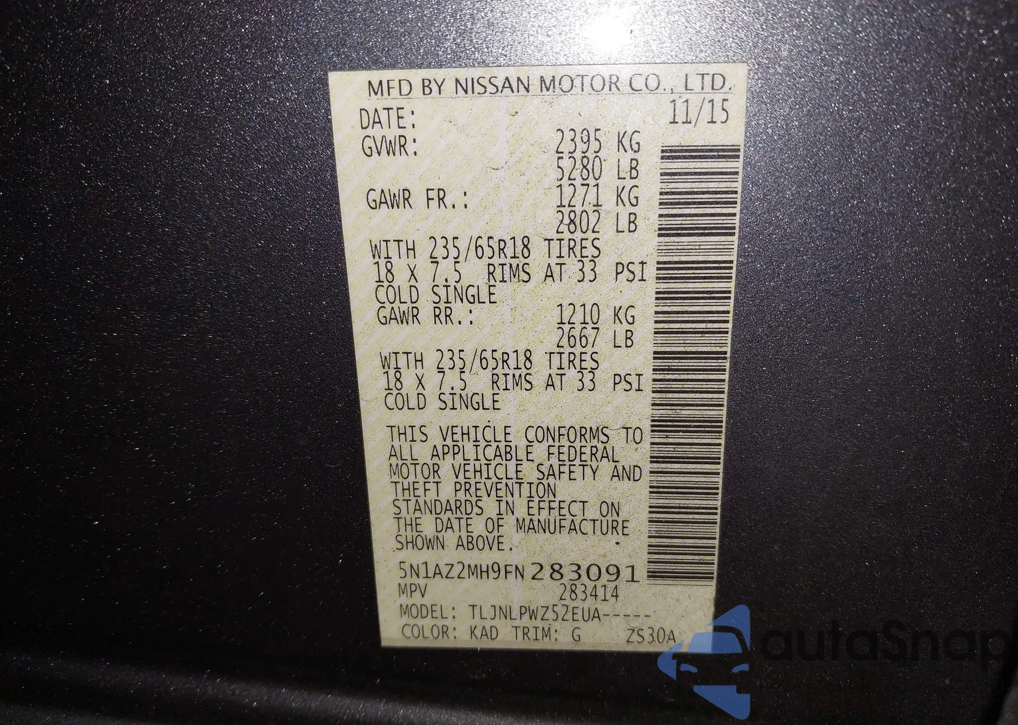 • VIN 5N1AZ2MH9FN283091
