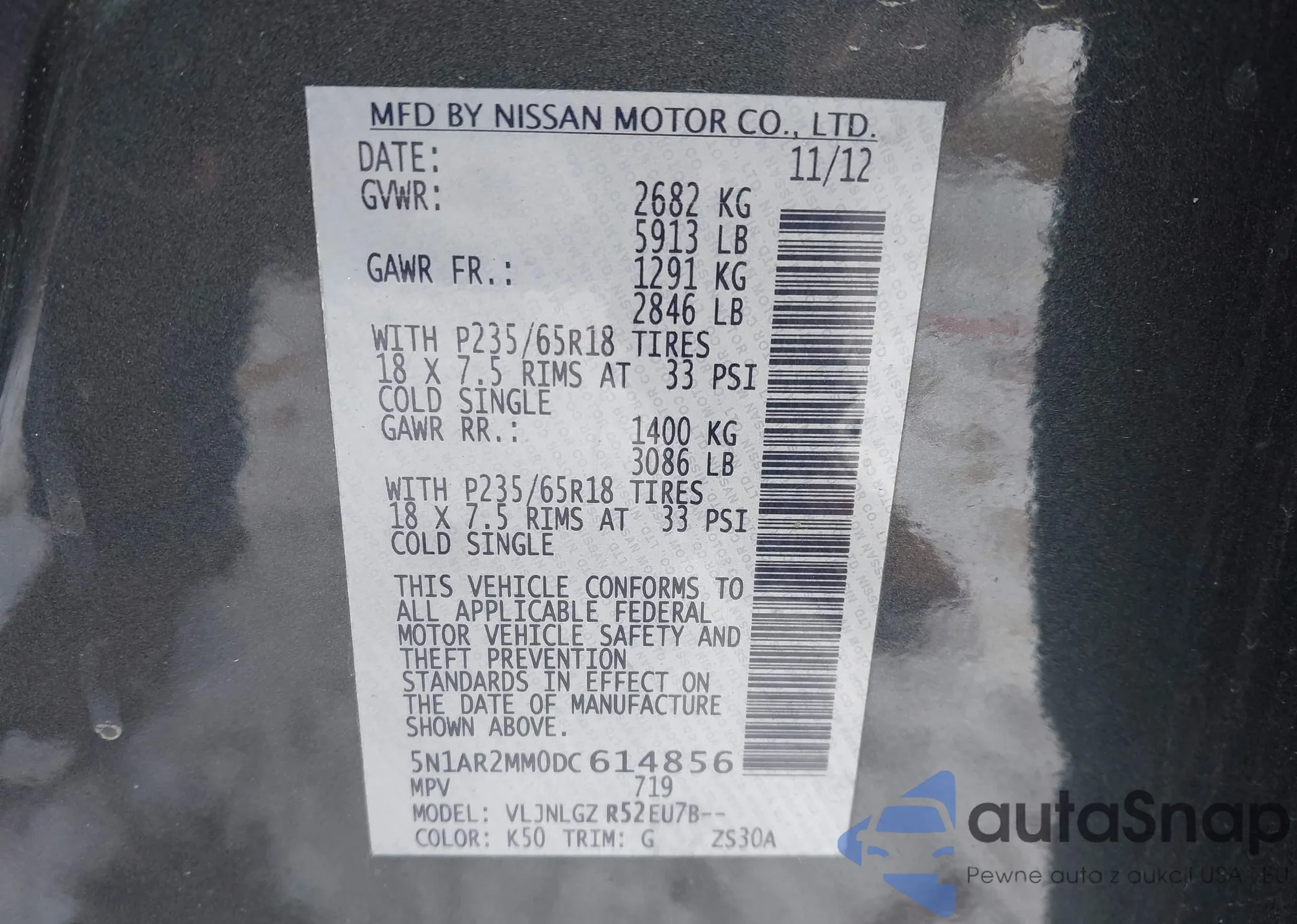 LOT: 44329507 VIN: 5N1AR2MM0DC614856